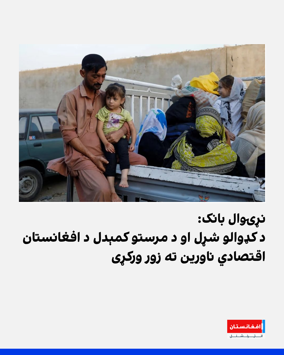 نړۍوال بانک په خپل تازه راپور کې ویلي، چې په پراخه توګه د کډوالو شړلو، د بهرنیو مرستو کمېدو او مرګوني طبیعي پېښو د افغانستان انساني او اقتصادي ناورین نور هم زیات کړی دی.