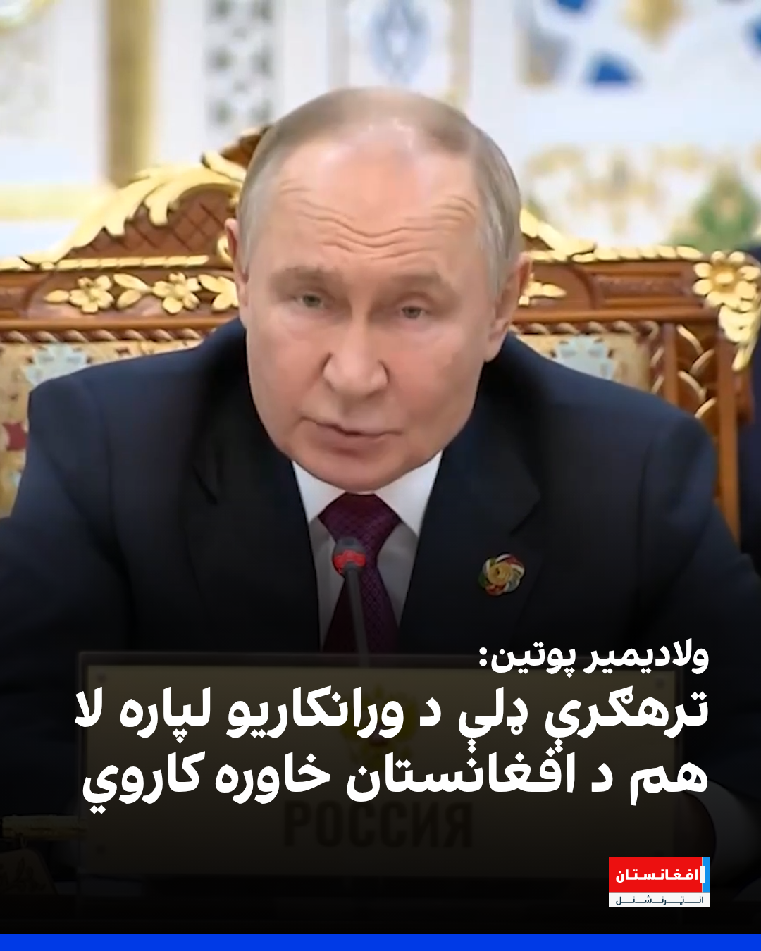 پوتین د تاجکستان په پلازمېنه دوشنبه کې په «روسیه - منځنۍ اسیا» سرمشریزه غونډه کې د خبرو پرمهال وویل، چې « موږ وینو د افغانستان اوسنی حکومت د متقابلو ګټو پر بنسټ په بېلابېلو برخو کې د همکارۍ لپاره چمتو دی، په ځانګړي ډول د ترهګرۍ او د نشه يي توکو مافیا خلاف مبارزه کې. له شک پرته روسیه د دغو هڅو ملاتړ ته چمتو ده».
