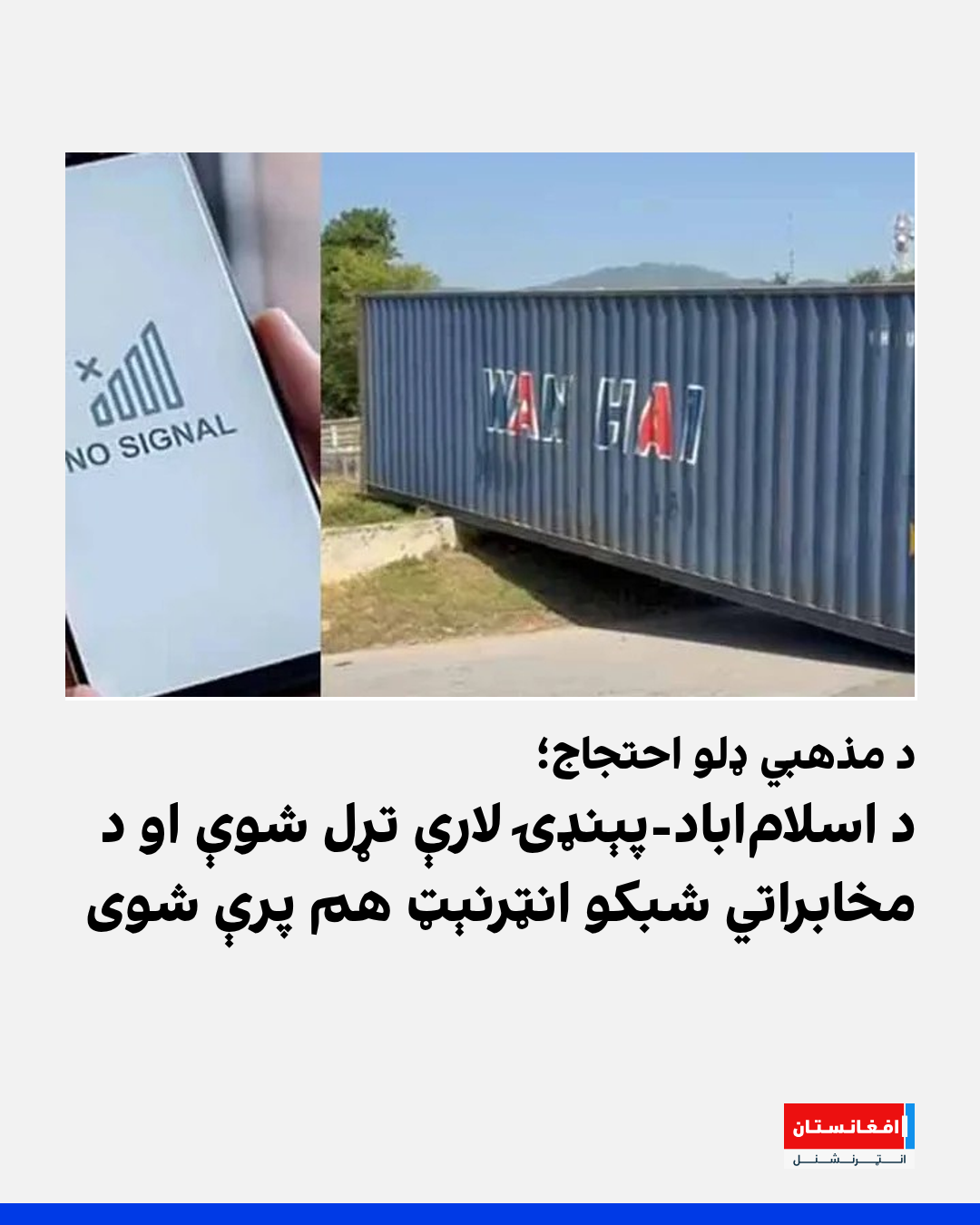 د پاکستان حکومت د مذهبي ډلو د احتجاجونو له امله د اسلاماباد-پېنډۍ لارې تړلې او د مخابراتي شبکو انټرنېټي خدمتونه یې هم بند کړي دي. دغه لارې وروسته له هغه وتړل شوې، چې دغه مذهبي ډلو د پاکستان په پلازمېنه اسلاماباد کې د لاریون اعلان وکړ.
