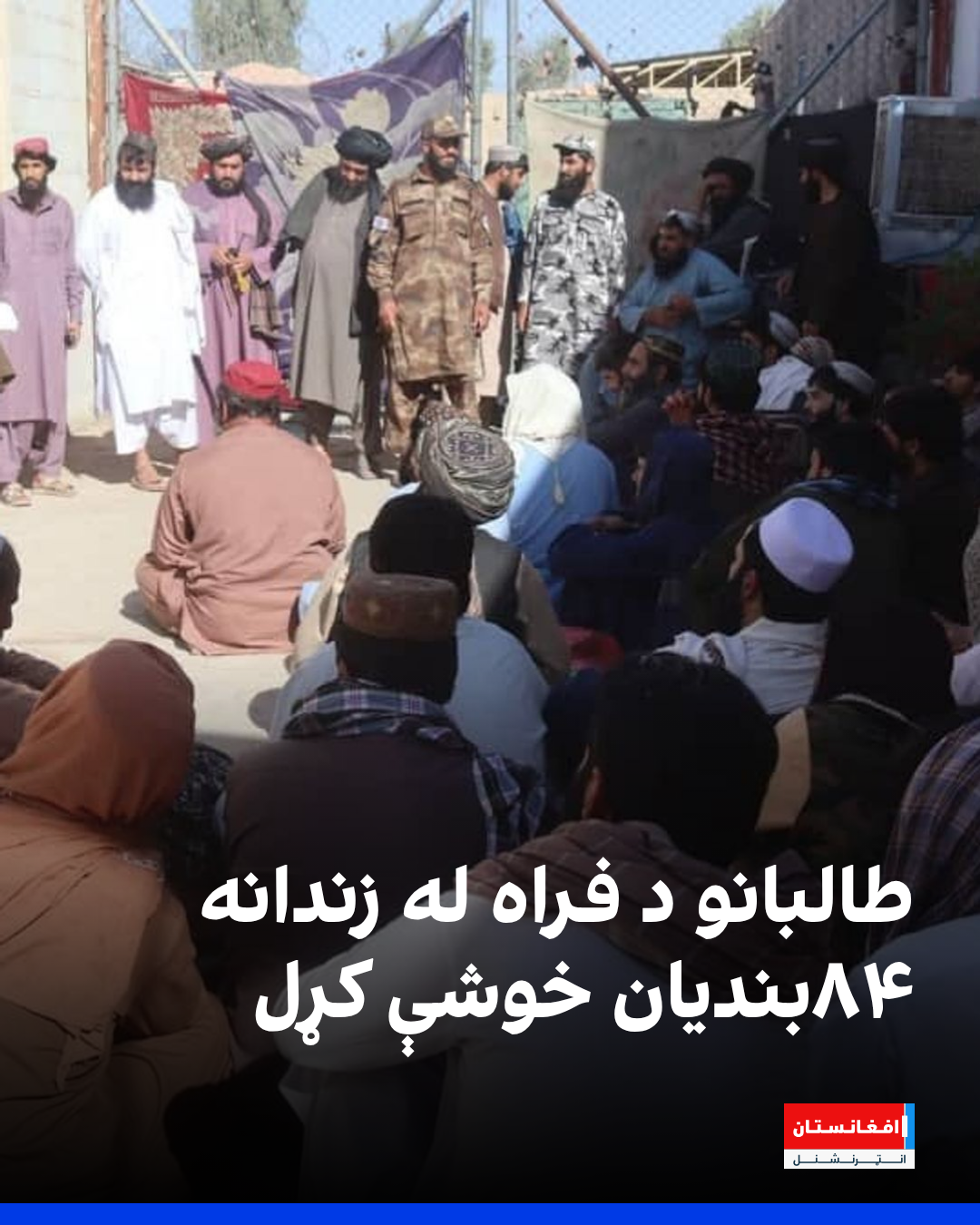 د طالبانو تر ادارې لاندې باختر خبري اژانس وايي چې په فراه ولایت کې سیمه ییزو چارواکو د طالبانو د مشر ملا هبت الله اخوندزاده په امر ۸۴ بندیان خوشې کړي او د ۶۳ نورو د بند موده یې کمه کړې ده.
