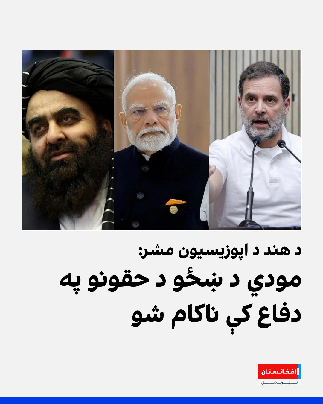 د هند د اپوزیسیون مشر نن شنبه (د تلې ۱۹مه) پر خپل لومړي وزیر تور ولګاوه، چې د طالبانو پر وړاندې د هندي ښځو په دفاع کې ناکام شو. راهول ګاندي نریندرا مودي ته لیکلي: «تاسې یو داسې چا ته دا اجازه ورکوئ، چې ښځینه خبریالانې له غونډې وباسي، دا په حقیقت کې تاسې هندۍ ښځې کمزوري بولئ».