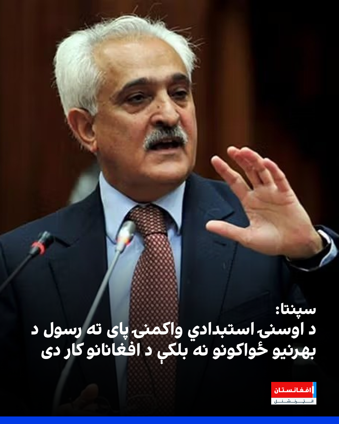 سپنتا زیاتوي، چې په افغانستان کې د عدالت او ډیموکراسۍ رامنځته کول او د اوسنۍ استبدادي واکمنۍ پای ته رسول د بهرنیو ځواکونو نه، بلکې د افغانانو کار دی.