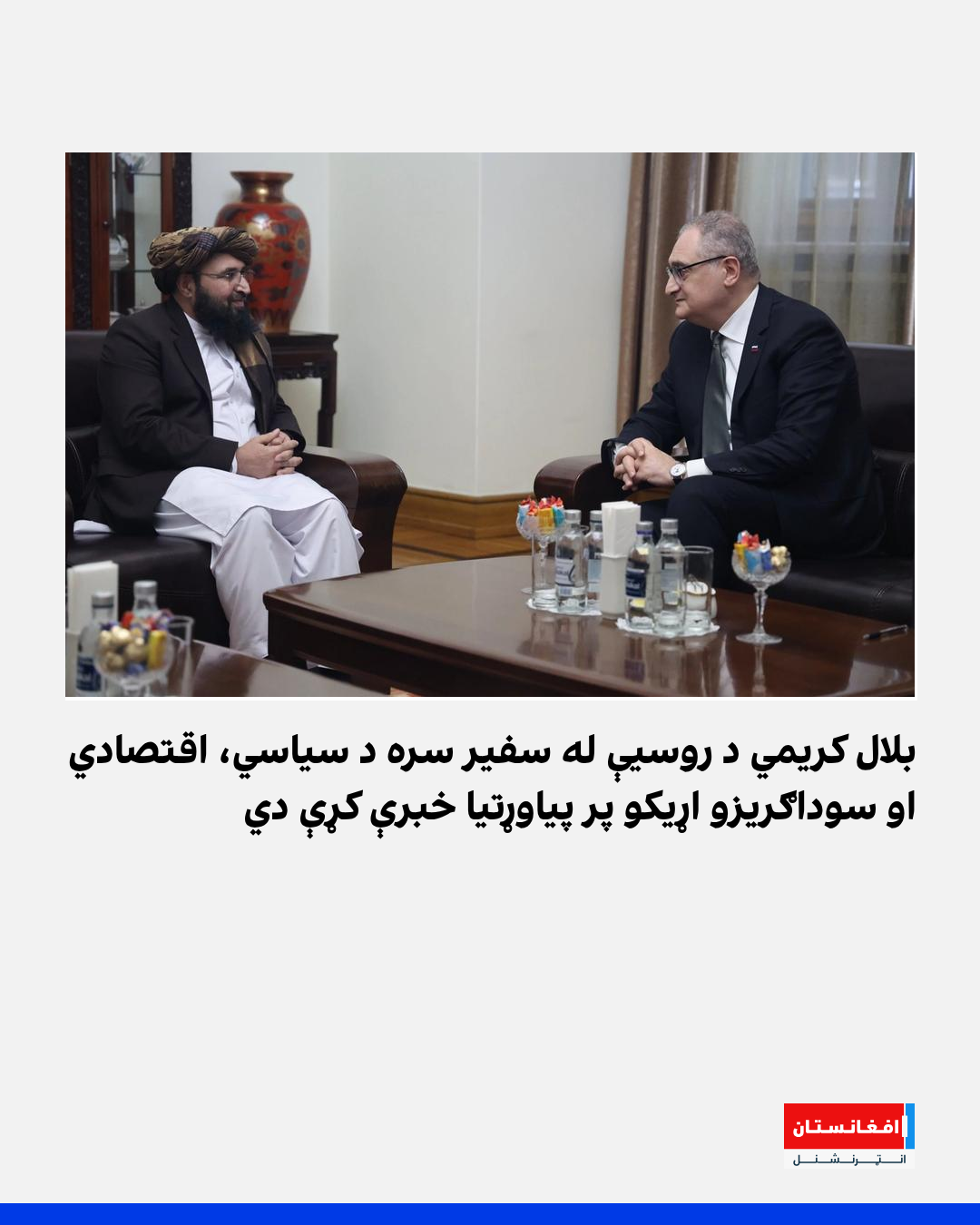 په چین کې د طالبانو سفیر بلال کریمي له خپل روسي سیال اېګور مورګولوف سره په لیدنه کې د افغانستان او روسیې ترمنځ د سیاسي، اقتصادي او سوداګریزو اړیکو د پیاوړتیا، د پانګونې فرصتونو او د سیمې د اوسني وضعیت په اړه خبرې کړې دي.