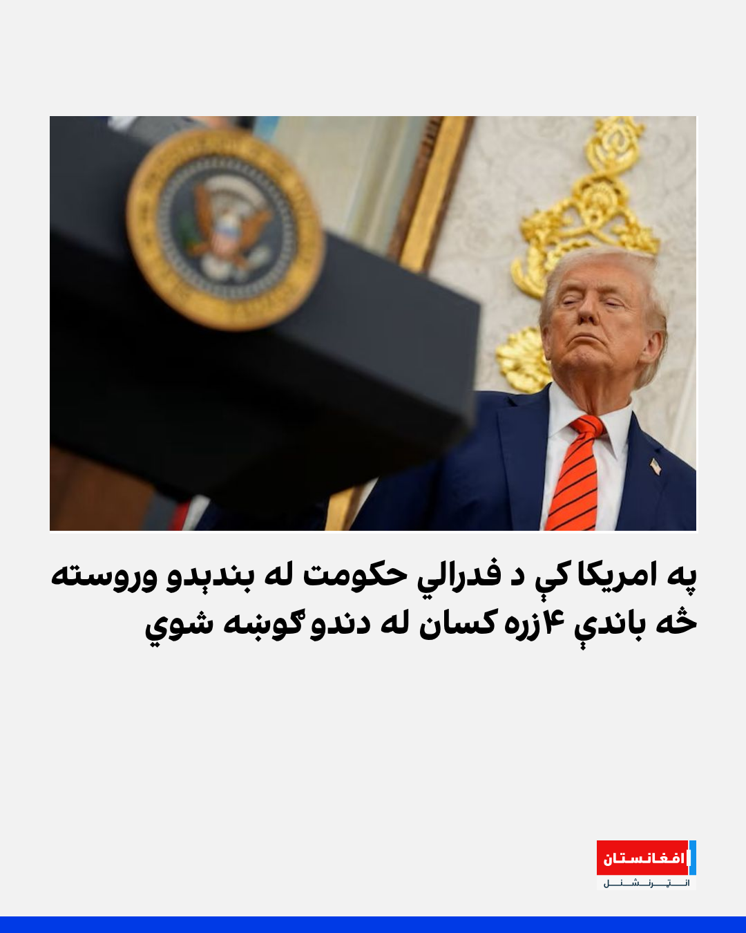د امریکا د ولسمشر ډونالډ ټرمپ ادارې اعلان کړی، چې د روانې اکټوبر میاشتې له لومړۍ نېټې د فدرالي حکومت له تړل کېدو وروسته ۴۱۰۸ فدرالي کارکوونکي له دندو ګوښه شوي دي.