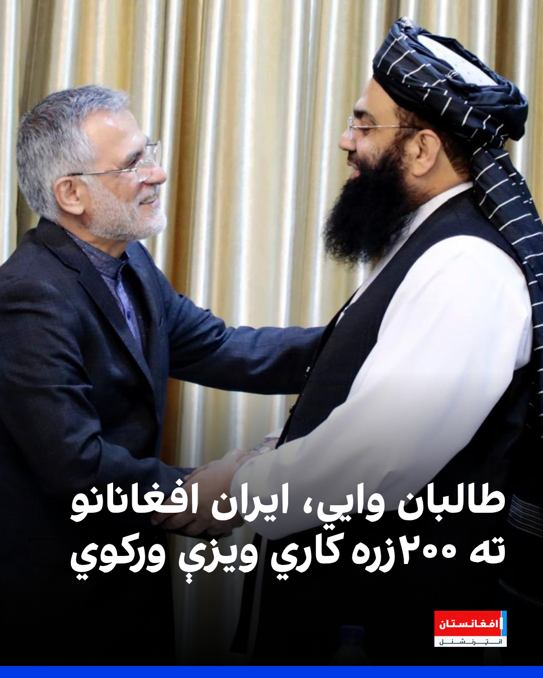 د طالبانو د کډوالو او بېرته راستنېدونکو چارو وزیر مولوي عبدالکبیر په کابل کې د ایران له سفیر او د سویلي اسیا لپاره د یاد هېواد د بهرنیو چارو وزارت له مسوول رضا بهرامي سره لیدلي دي. دغه وزارت وایي، د ناستې پر مهال نوموړي ژمنه کړې چې هېواد یې افغانانو ته ۲۰۰زره کاري ویزې ورکوي.