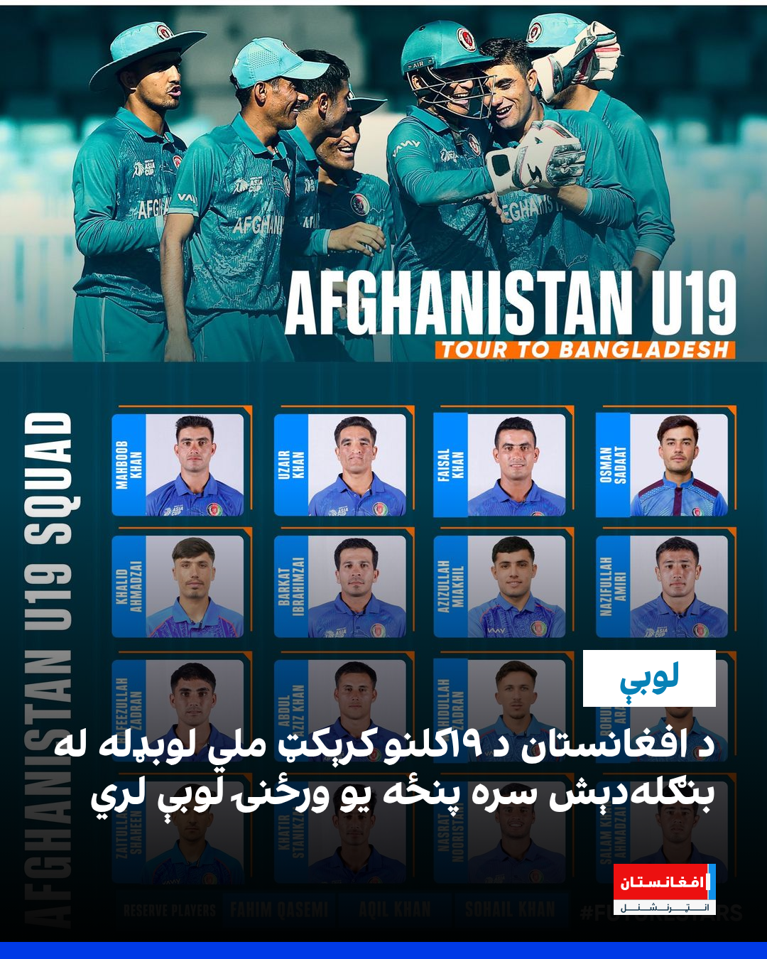 د افغانستان د ۱۹کلنو کرېکټ ملي لوبډله د بنګلهدېش د ۱۹ کلنو ملي لوبډلې پر وړاندې پنځه یو ورځنۍ لوبې لري. دغه لوبې به د روانې اکتوبر میاشتې په ۲۸مه نېټه پیل او د نومبر تر ۹مې نېټې به د بنګلهدېش په کوربهتوب ترسره شي.