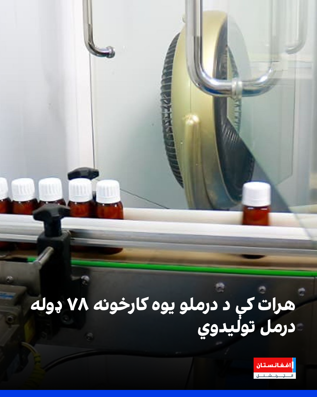 د هرات ولایت په صنعتي ښارګوټي کې د درملو یوه خصوصي تولیدي کارخونه ۷۸ ډوله درمل تولېدوي، چې د هېواد ۳۰ ولایتونو ته یې صادروي.