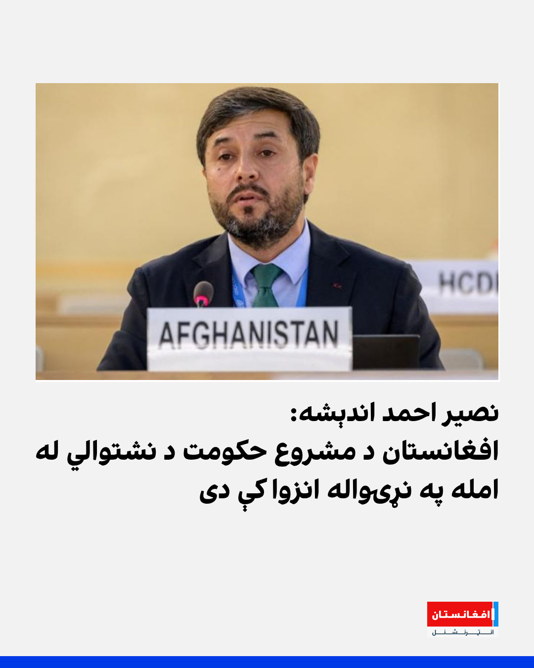 په جنیوا کې د افغانستان استازي نصیر احمد اندېشه له افغانستان انټرنشنل سره په مرکه کې ویلي، چې د طالبانو په شتون کې په دغه هېواد کې «د هویت یو واحد فکر» نشته. نوموړي زياته کړې: «افغانستان مشروع حکومت نه لري، پر نړۍوال سټېج د غږ څوک نشته او له همدې امله په نړۍواله انزوا کې دی.»