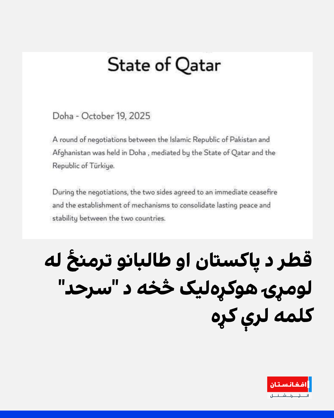 په دوحه کې د پاکستان او افغانستان ترمنځ د خبرو او سمدستي اوربند په اړه قطر یوه اعلامیه خپره کړې، چې په کې یې د ډیورنډ کرښه «سرحد» یاد کړې ده.