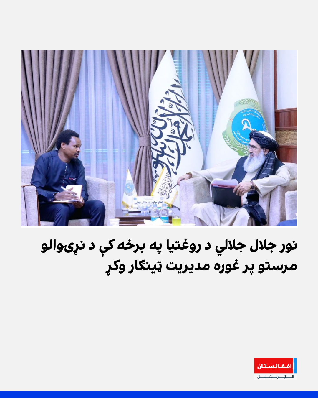 د طالبانو د عامې روغتیا وزیر نور جلال جلالي (یکشنبه د تلې ۲۷مه) د افغانستان لپاره د وګړو صندوق (UNFPA)، د کډوالۍ نړۍوال سازمان او د روغتیا نړۍوال سازمان له استازو سره په کتنه کې د روغتیايي خدمتونو په وړاندې کولو او د نړۍوالو له لوري د مرستو پر غوره مدیریت ټينګار وکړ.