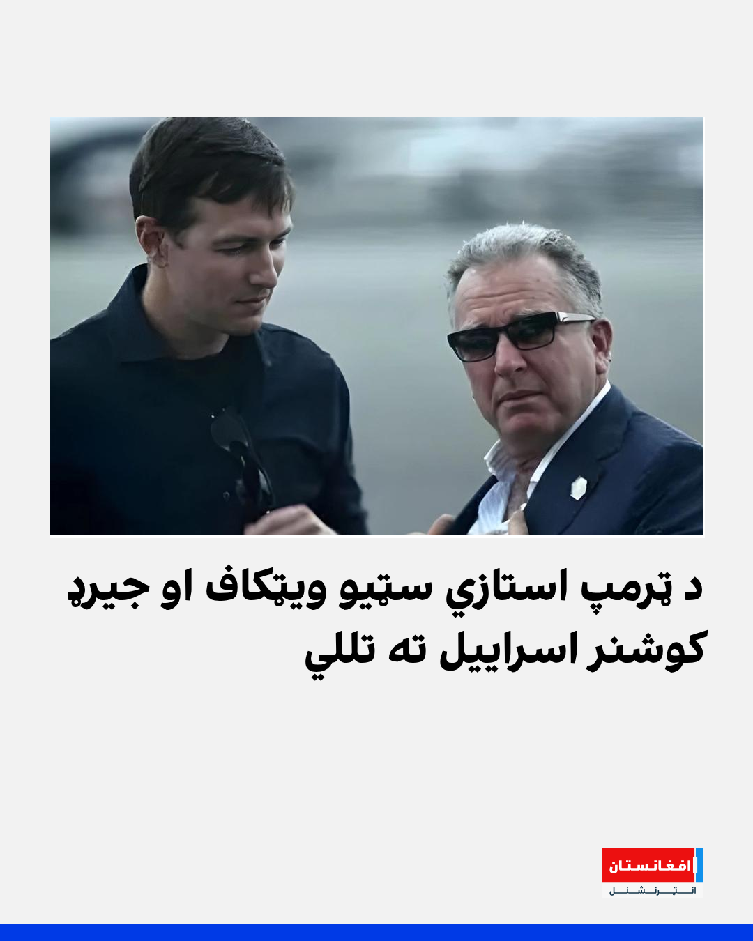 د اکسیوس خبریال بارک راویډ راپور ورکړی، چې د امریکا د ولسمشر ډونالډ ټرمپ استازي سټیو ویټکاف او جیریډ کوشنر د غزې د اوربند د طرحې عملي کولو د څار لپاره اسراییل ته تللي دي.