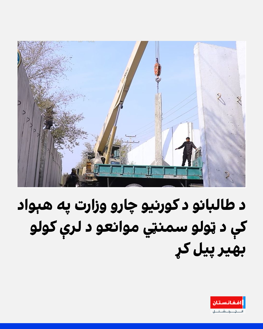 د طالبانو د کورنیو چارو وزارت د مقام د دفتر رييس زینالله عابر وايي، د دوی کابینې پرېکړه کړې چې په ټول هېواد کې سمنټي موانع لرې کړای شي او د دغې چارې مسوولیت هم کورنیو چارو وزارت ته سپارل شوی دی.