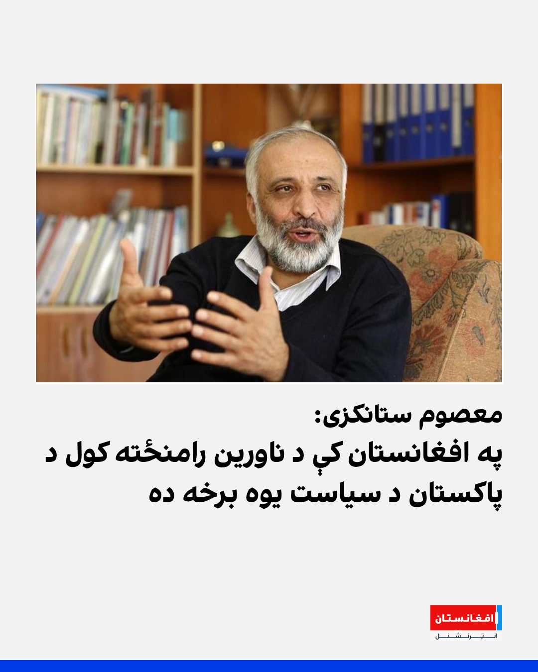 د افغانستان د جمهوري نظام د ملي امنیت پخوانی مشر معصوم ستانکزی وايي، په افغانستان کې د ناورین رامنځته کول د پاکستان د سیاست یوه برخه ده. د ستانکزي په وینا، تر هغې چې په دغه سیاست کې په حقیقي توګه بدلون رانهشي، نو له افغانستان سربېره به پاکستان هم له لویو ستونزو سره مخ وي.