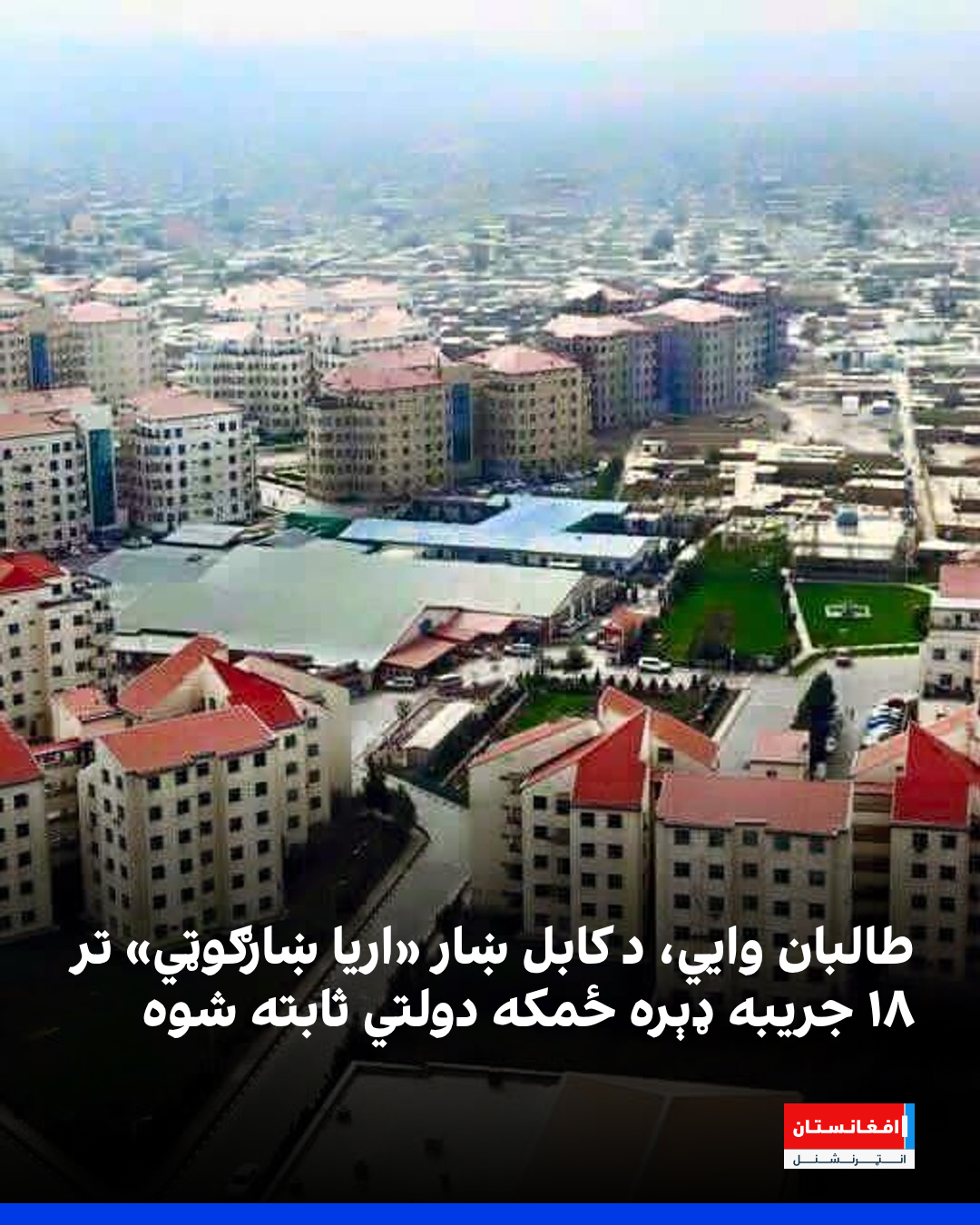 د طالبانو د عدليې وزارت نن دوشنبه (د تلې ۲۸مه) ویلي، چې د کابل ښار د «اریا ښارګوټي» تر ۱۸ جریبه ډېره ځمکه دولتي ثابته شوه. دغه وزارت ویلي، چې د کابل ښار د لسمې ناحیې اړوند د «اریا ښارګوټي» په لومړي او دویم فاز کې تر ۱۸ جریبه ډېره ځمکه دولتي ثابته شوې.