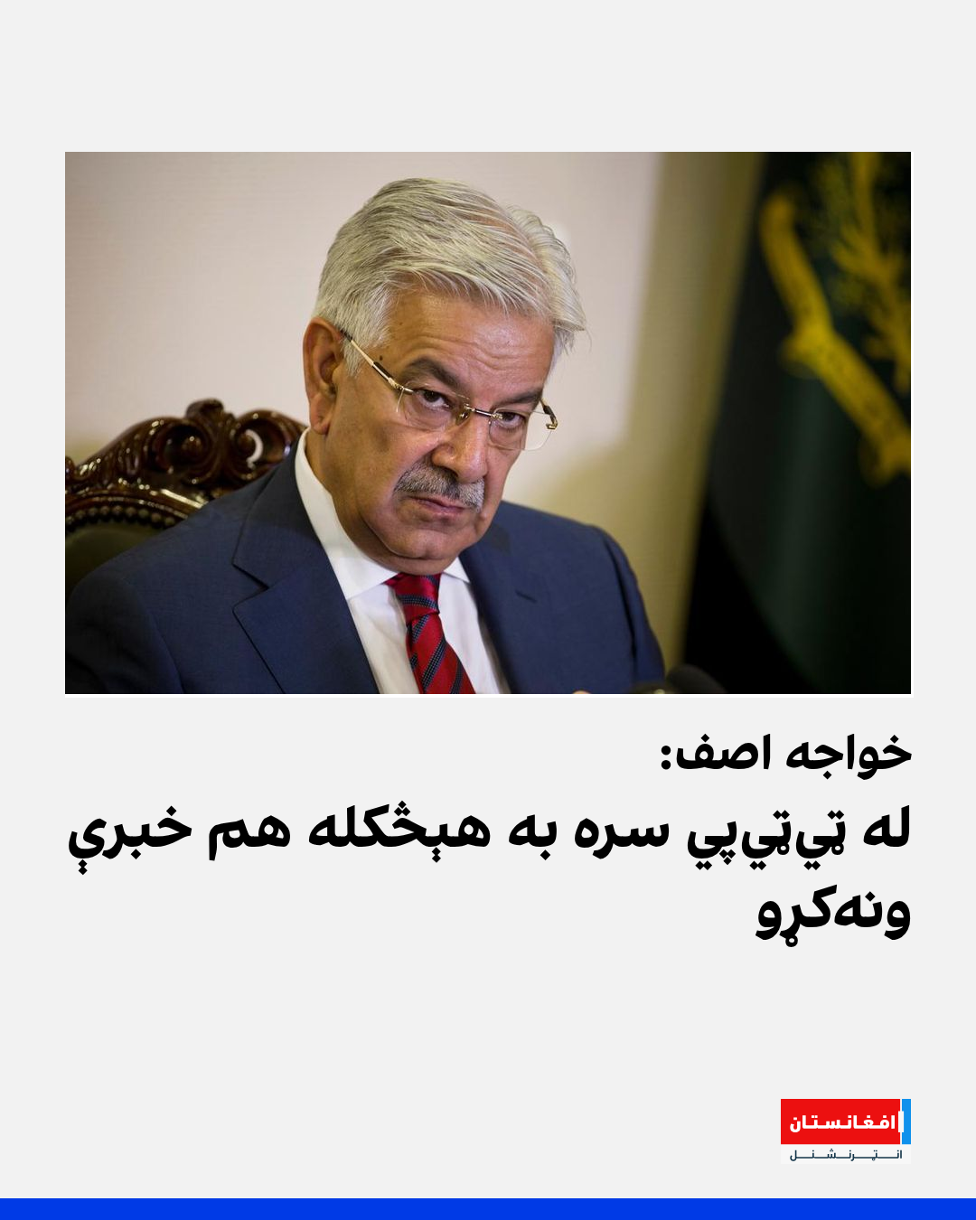 د پاکستان دفاع وزیر خواجه اصف وايي، په قطر کې له افغان طالبانو سره خبرې شوي او په وینا یې هېڅکله به هم له تحریک طالبان پاکستان «ټيټيپي» سره خبرې ونهکړي.