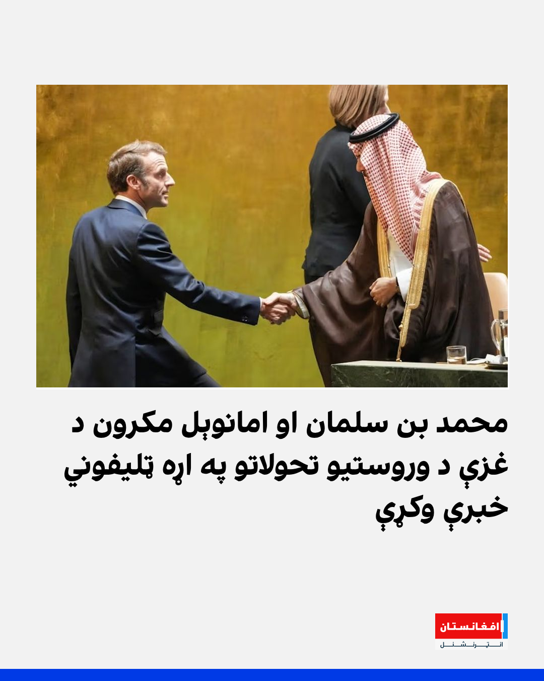د سعودي ولیعهد محمد بن سلمان او د فرانسې ولسمشر امانوېل مکرون څو ساعته وړاندې په ټلیفوني اړیکه کې د غزې د وروستیو تحولاتو، د جګړې د پای ته رسولو او د ثبات د بیا رامنځته کولو په اړه خبرې وکړې.