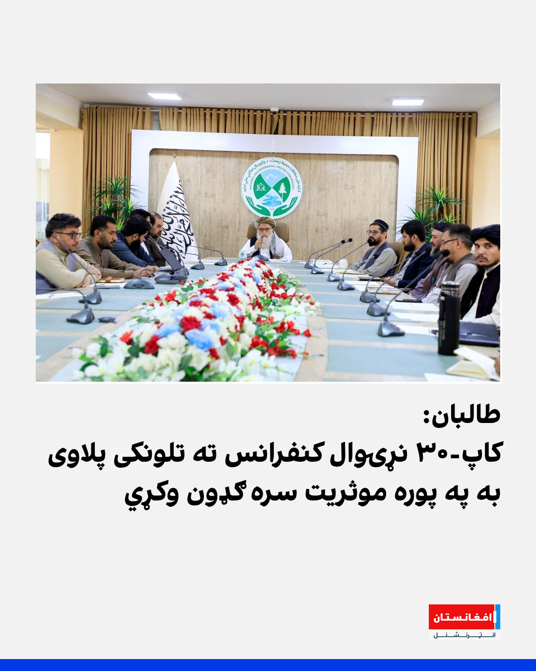 د طالبانو د چاپېریال ساتنې ملي ادارې رييس د اقلیمي بدلون اړوند د کاپ-۳۰ نړۍوال کنفرانس لپاره د چمتووالي په ۴مه مشورتي غونډه کې وویل، هڅې کوي چې یاد نړۍوال کنفرانس ته تلونکی پلاوی په پوره موثریت سره ګډون وکړي. د اقلیمي بدلون په تړاو دغه غونډه به راتلونکې میاشت په برازیل کې پیل شي.