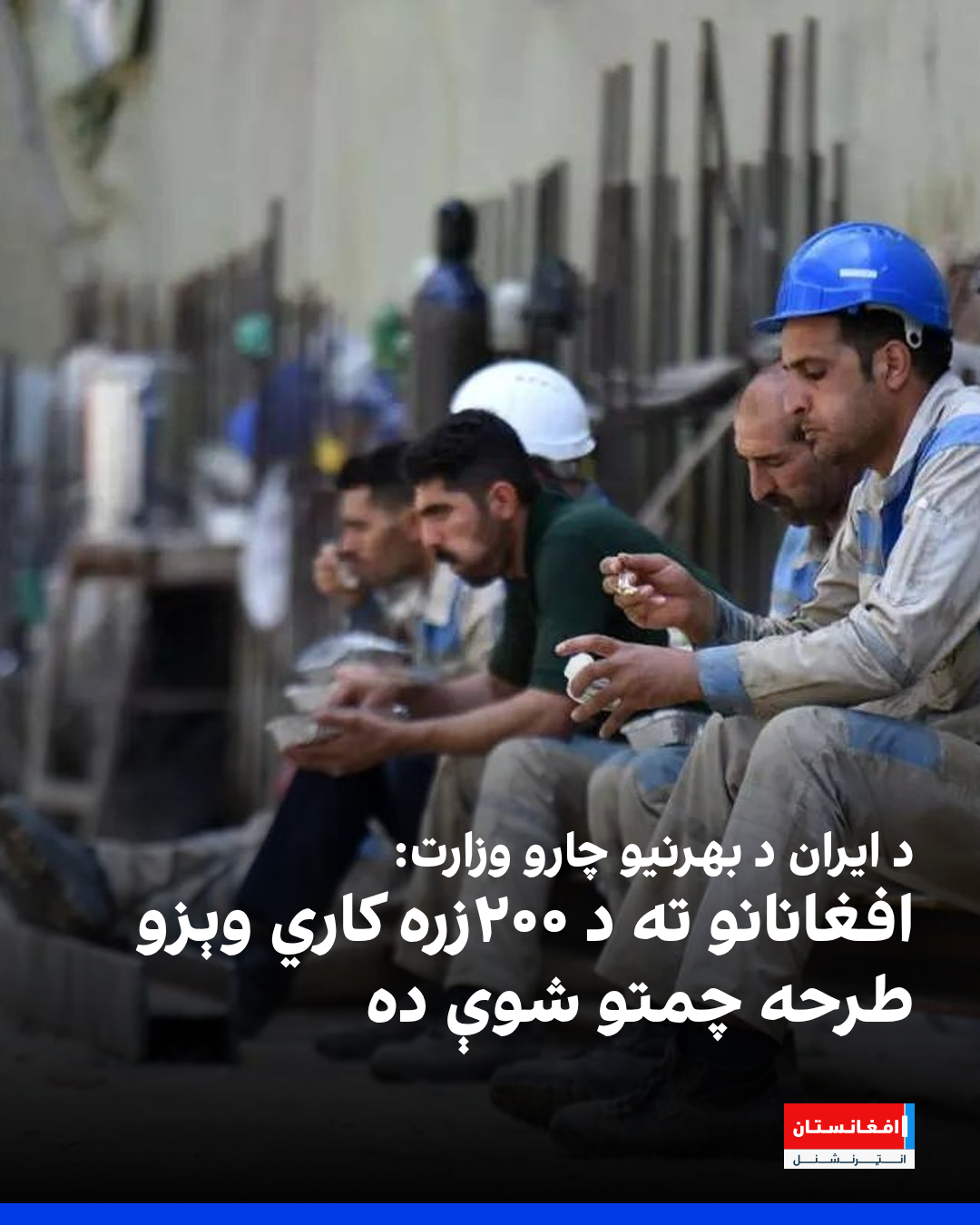 د ایران د بهرنیو چارو وزارت دوشنبه (د تلې ۲۸مه) ویلي، چې د افغانانو لپاره د کاري وېزو طرحه چمتو شوې ده. د ایران د بهرنیو چارو وزارت ویاند اسماعیل بقایي د بهرنیو وګړو په اړه د یاد هېواد د تازه تګلارو په اړه ویلي، چې د افغان کډوالو د حضور مدیریت لپاره یو لړ اقدامات شوي دي.