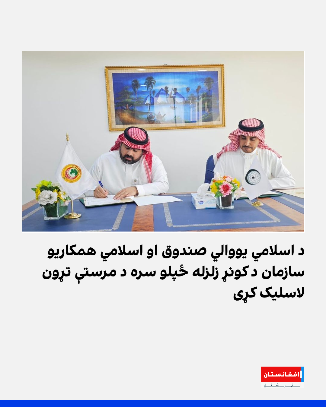 د اسلامي یووالي صندوق (ISF) او د اسلامي همکاریو سازمان (OIC) د افغانستان دفتر د هېواد په ختیزو ولایتونو کې د زلزله ځپلو خلکو د انساني ملاتړ لپاره د مرستې یو تړون لاسلیک کړی دی.