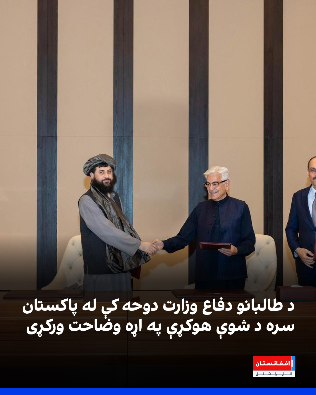 د طالبانو دفاع وزارت په دوحه کې له پاکستاني پلاوي سره د شوې هوکړې په اړه وضاحت ورکړی او وايي، له پاکستاني لوري سره پر بشپړ اوربند، یو بل ته درناوي او پر امنیتي ځواکونو، ملکیانو او نظامي تاسیساتو بریدونو نه کولو او د خبرو اترو له لاري د مسایلو پر حل هوکړه شوې ده.