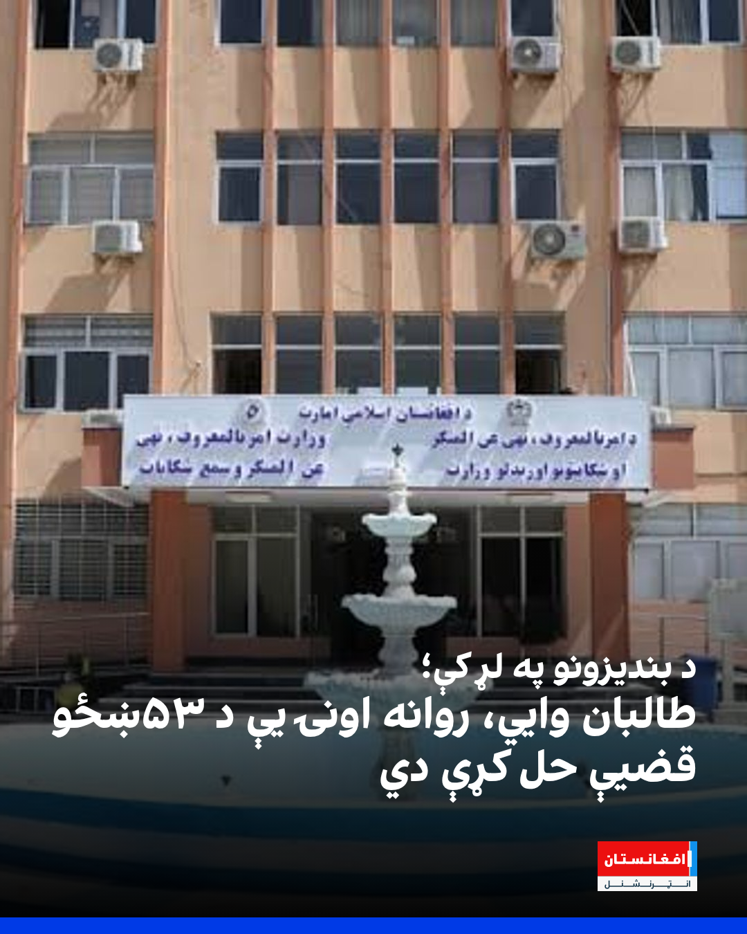 د طالبانو د امربالمعروف او شکایتونو اورېدو وزارت خبر ورکړی، چې د روانې اونۍ په لړ کې یې د میراث، جبري نکاح مخنېوي او بېلابېلو برخو کې د ښځو ۵۳قضیې حل کړې دي. دغه وزارت وایي، په دغه موده کې یې ۵کوډګر نیولي، ۲۲دښمنۍ یې ختمې کړې او له سوداګرو سره یې ۸۲ اصلاحي ناستې هم کړې دي.