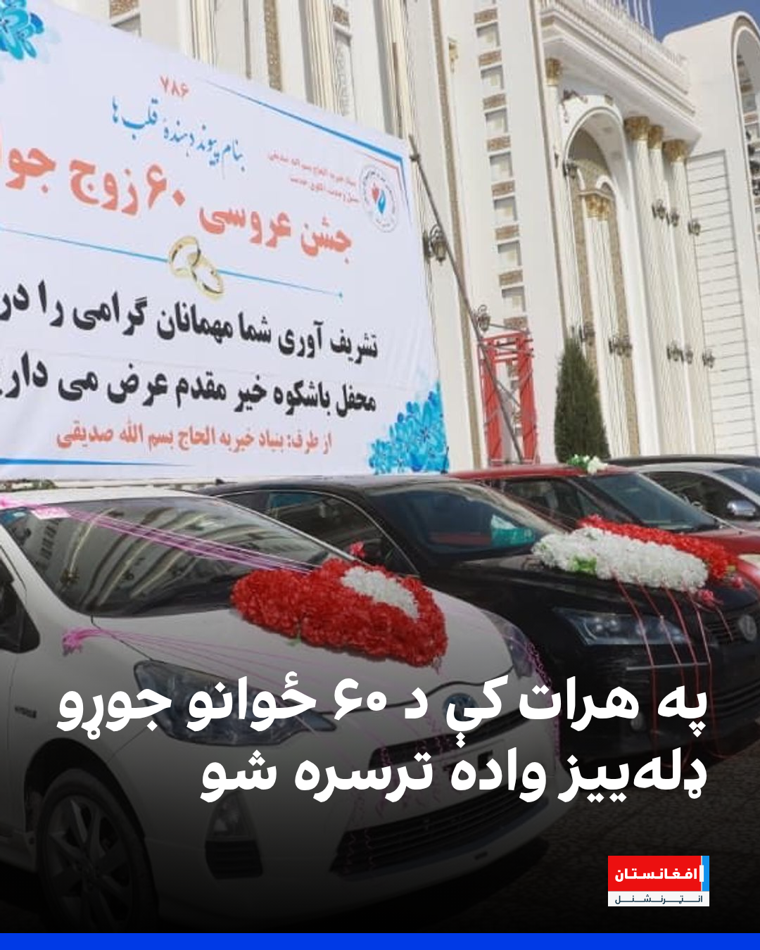 د طالبانو تر واک لاندې باختر خبري اژانس خبر ورکړی، چې په هرات کې د «بسمالله صدیقي» خیریه بنسټ په همکارۍ د ۶۰ ځوانو جوړو ډلهییز واده ترسره شو. د واده ټول لګښت چې له یو لک ډالرو زیات اټکل شوی، د یاد خیریه بنسټ لهخوا ورکړل شوی دی.