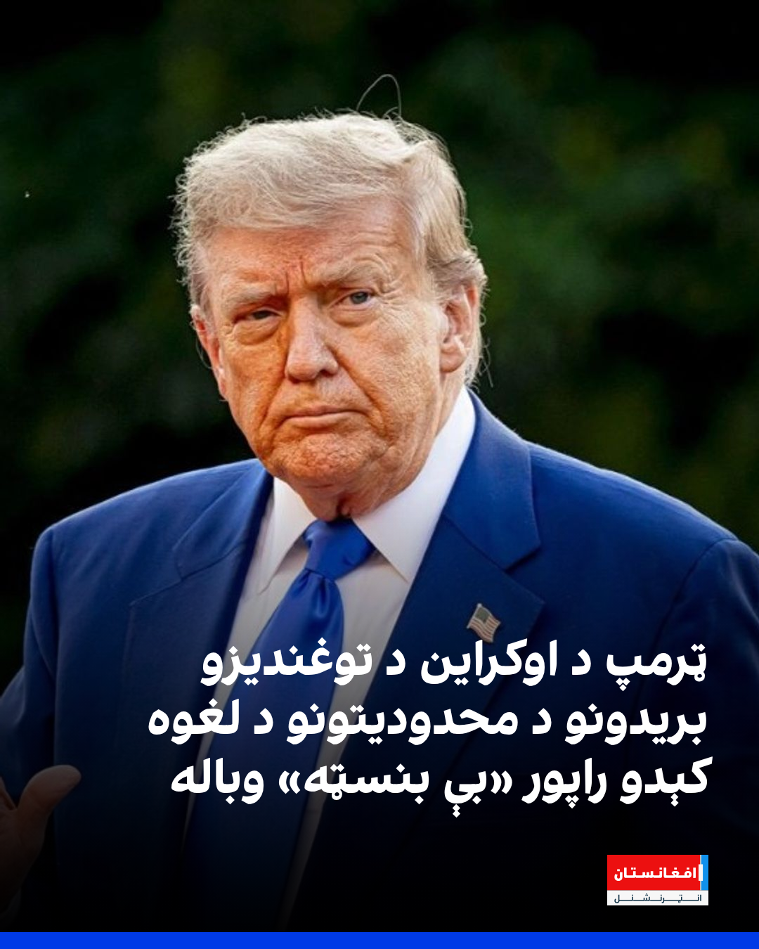 ټرمپ پر ټروت سوشل خواله رسنۍ لیکلي،چې د والسټریټ ژورنال راپور، چې ګواکې امریکا د اوکراین له لوري د لوېدیځو اوږد واټن توغندیو د کارولو اجازه ورکړې، بې بنسټه او جعلي دی.