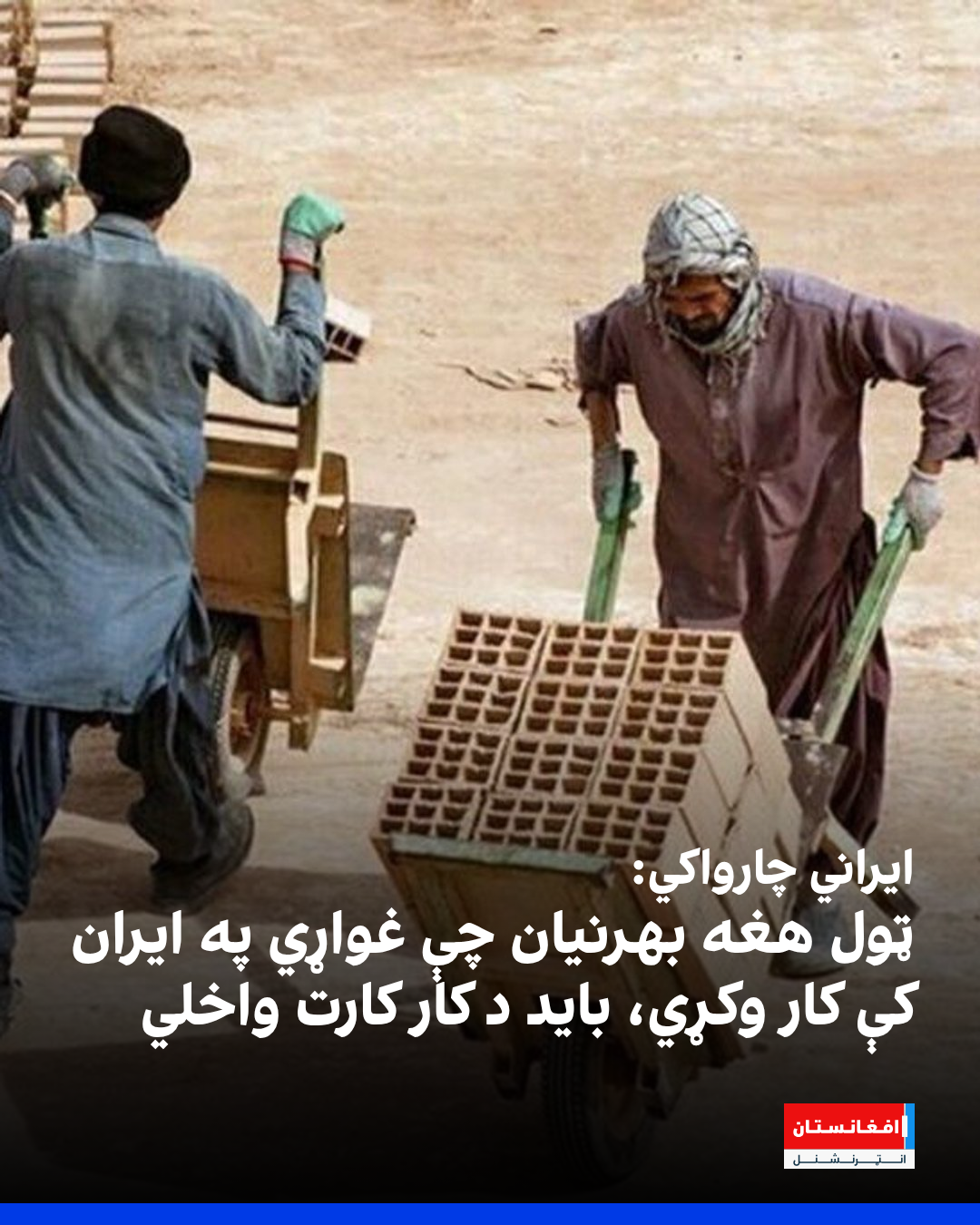 تازه ایراني چارواکو اعلان کړی، چې په دغه هېواد کې یې د بهرنیو کارګرو لپاره د کارتونو اخېستل لازمي کړي دي. د ایراني پولیسو د کډوالۍ د چارو مشر سردار حیدري ویلي:« هغوی چې په سیاحتي ویزو راغلي، نور نهشي کولای چې په ایران کې کار وکړي.»