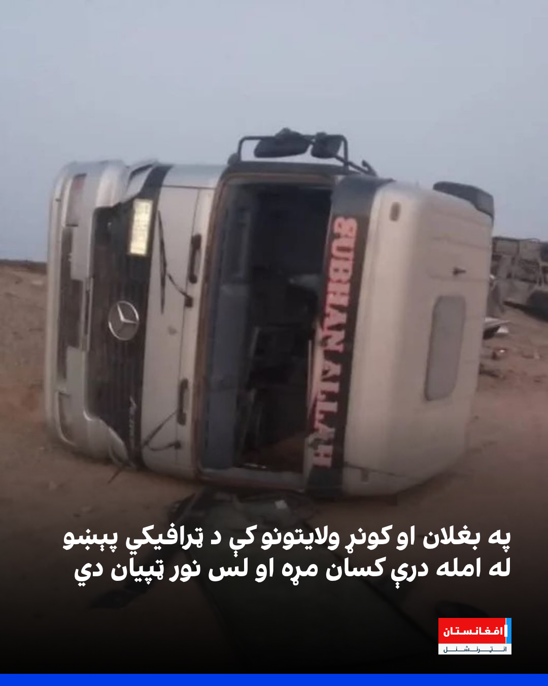 په بغلان او کونړ ولایتونو کې په دوو جلا ټرافیکي پېښو کې ۳ کسان مړه او لس نور ټپیان دي. په بغلان ولایت کې د طالبانو د پولیسو ویاند شېر احمد برهاني ویلي، پېښه د مرکزي بغلان په «تپه پشهیي» سیمه کې هغه مهال شوې چې یو موټر له سړک نه واوښت او له امله یې یو کس مړ او پنځه نور ټپیان شول.