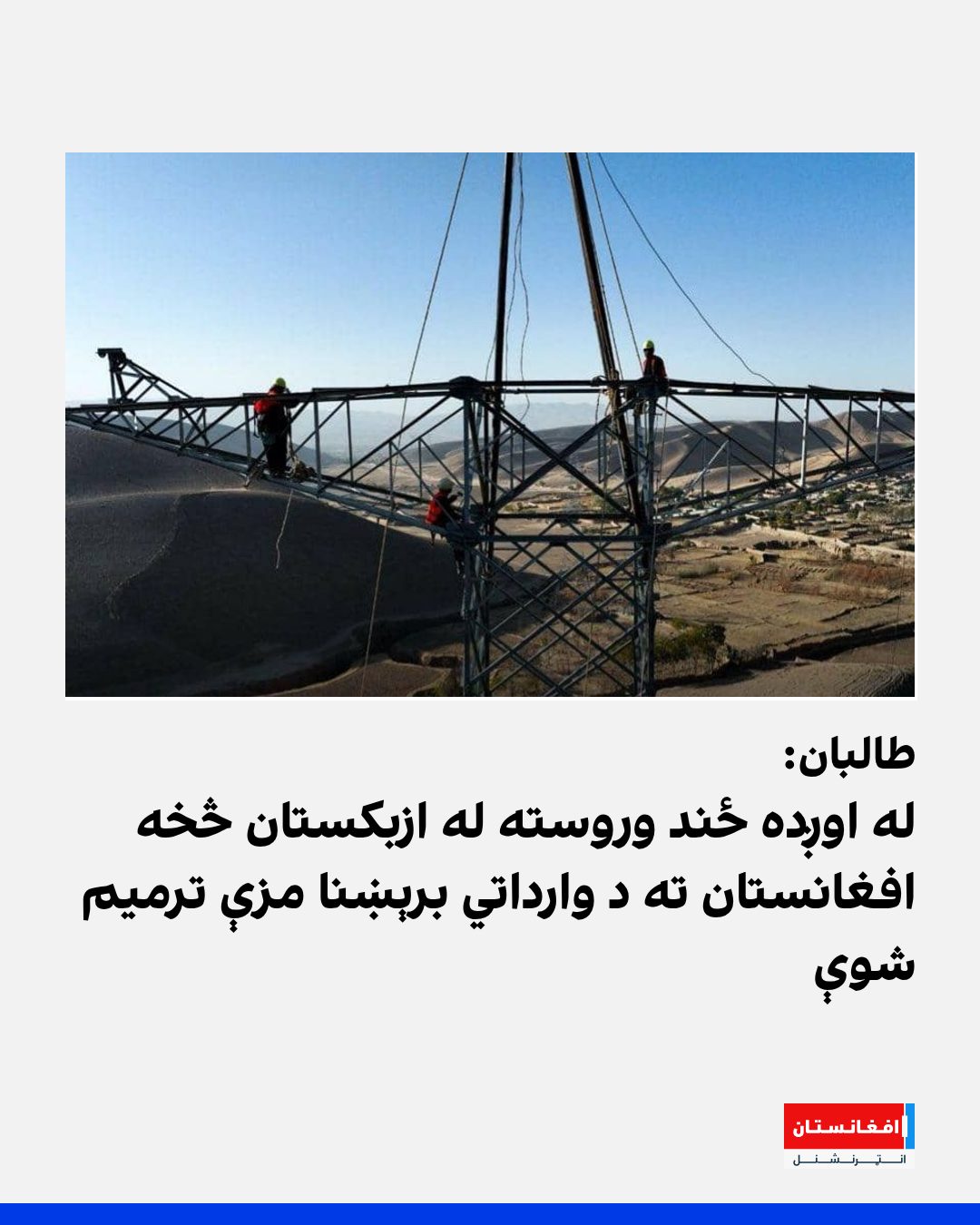 د طالبانو تر واک لاندې د برېښنا شرکت د یکشنبې په ورځ (د لړم ۴مه) په یوې خبرپاڼه کې ویلي، چې د دې مزو په ترمیم سره به د کابل په ګډون په ۱۱ ولایتونو کې د برېښنا د کمښت ستونزه حل شي.