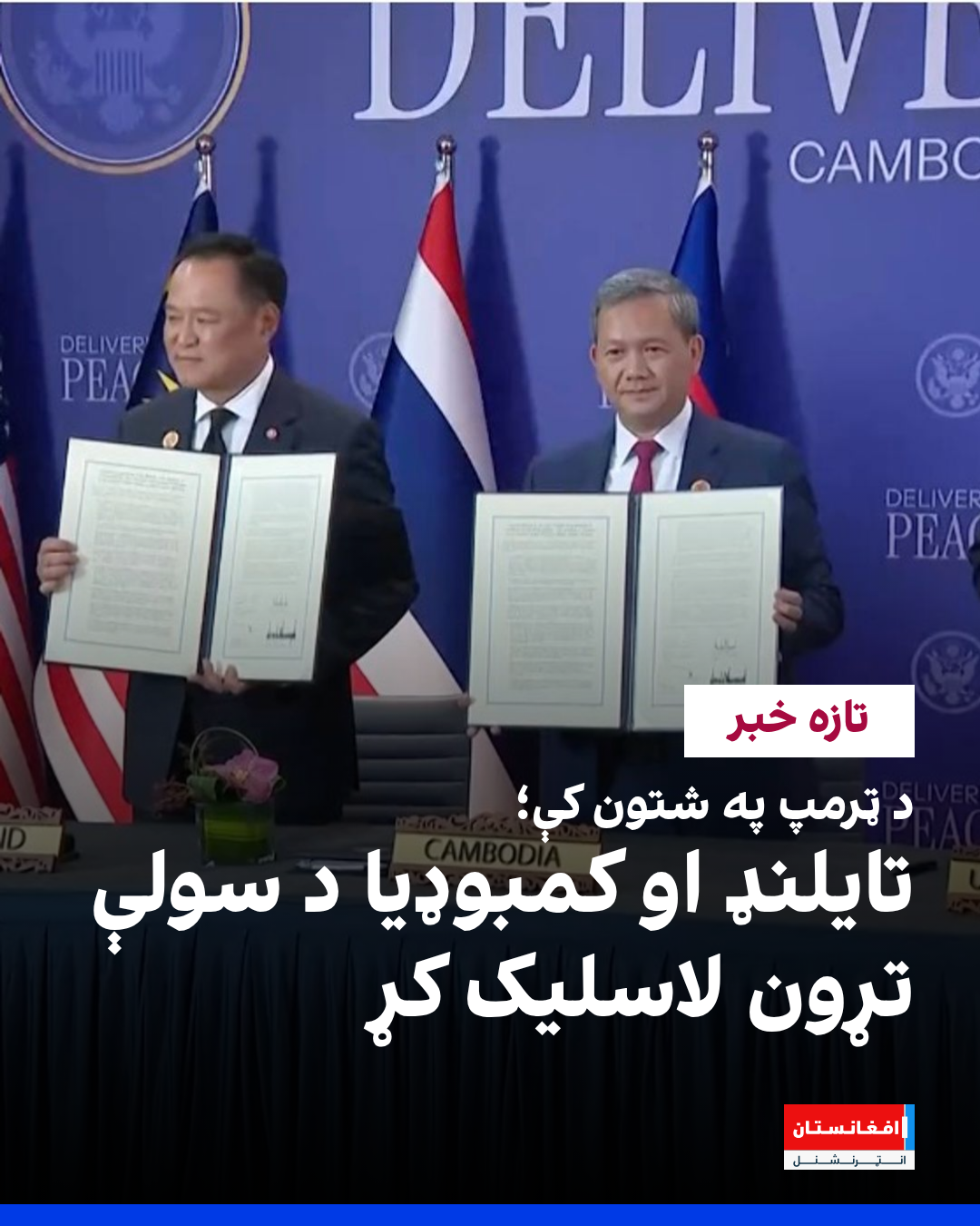د مالیزیا په کولالمپور ښار کې نن یکشنبه د (لړم ۳مه) د امریکا ولسمشر ډونالډ ټرمپ په حضور کې د تایلنډ او کمبوډیا لومړي وزیرانو د سولې تړون لاسلیک کړ. د تایلنډ لومړي وزیر انوتین چان ویرکول او د کمبوډیان لومړي وزیر هون مانات د «اړیکو د بیا رغولو» ژمنه هم کړې ده.