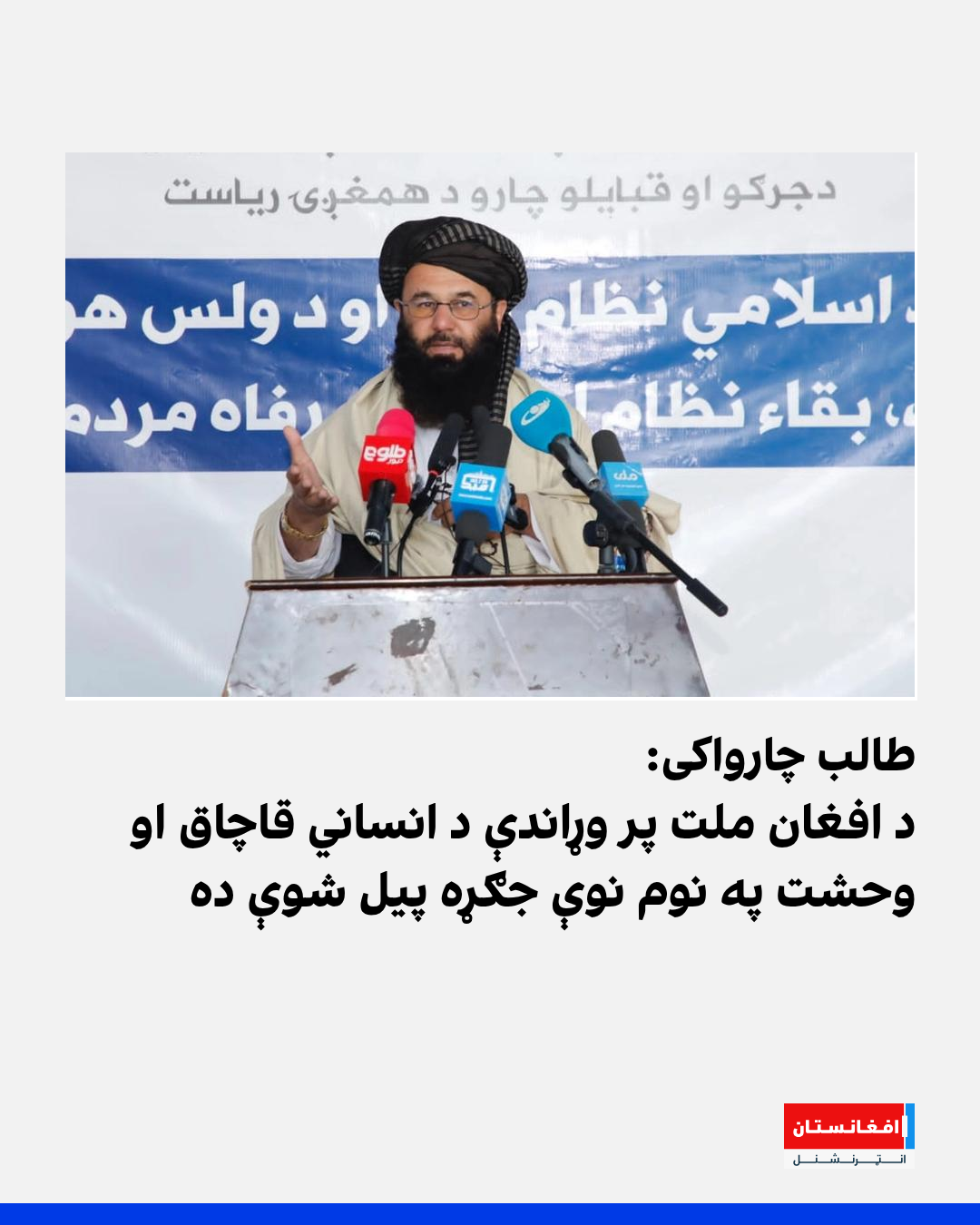 د طالبانو د سرحدونو او قبایلو چارو وزارت د څړځایونو او خدمتونو د اقتصاد رييس لعل محمد منیب غزني کې په یوې غونډه کې وویل، افغانستان د څو لسیزو په اوږدو کې د ډېرو بریدګرو د ماتې ځای پاتې شوی او په وینا یې اوس د افغان ملت پر وړاندې د انساني قاچاق او وحشت په نوم نوې جګړه پیل شوې ده.