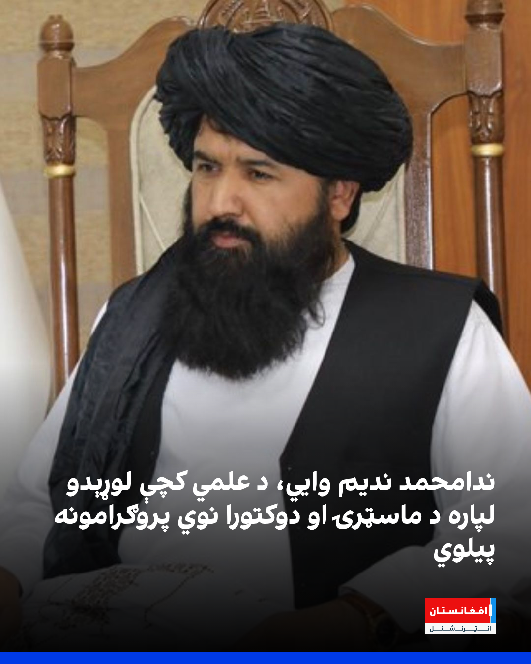 د طالبانو د لوړو زدهکړو وزیر ندامحمد ندیم ویلي، په هېواد کې د علمي ودې په موخه بېلابېلو پوهنتونونو کې د ماسټرۍ او دوکتورا نوي پروګرامونه پیلوي. هغه هلمند ته د سفر پرمهال زیاته کړې، چې پر یو شمېر نورو تحصیلي فرصتونو هم کار کوي.