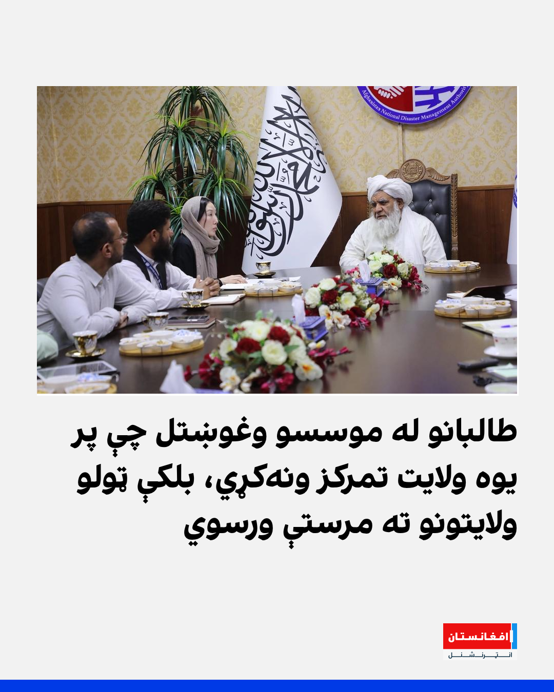 د طالبانو له پېښو سره د مبارزې چمتووالي ملي ادارې ريیس نورالدین ترابي د کډوالۍ نړۍوال سازمان له رييسې میاپارک او د ځینو نورو موسسو له استازو سره په کتنه کې وویل، موسسې باید پر یوه ولایت تمرکز ونهلري، بلکې د هېواد ۳۴ ولایتونو ته خپلې مرستې ورسوي.