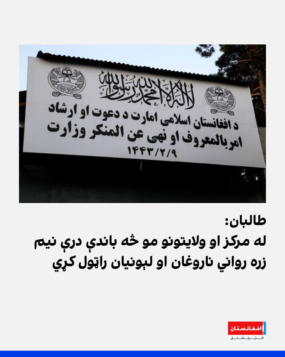 د طالبانو د امربالمعروف او نهې عن المنکر وزارت مسوولین وايي، د خپل مشر هبتالله اخوندزاده له حکم سره سم یې تراوسه ۳۵۸۰ رواني ناروغان او لېونیان راټول او د درملنې او ساتنې په موخه یې سرې میاشتې ریاستونو ته سپارلي دي.