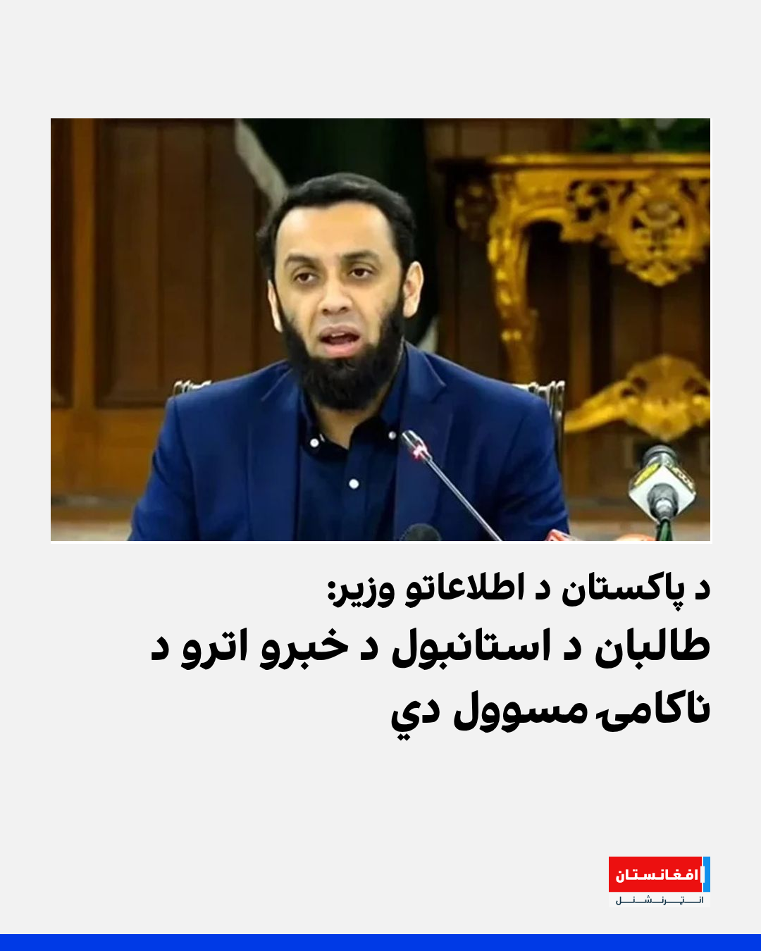 د پاکستان د اطلاعاتو او رسنیو وزیر عطاءالله تارړ د چهارشنبې په ورځ په یوې مرکه کې وویل، چې د طالبانو رژیم د استانبول د څلور ورځنیو خبرو اترو د ناکامۍ مسوول دی. نوموړي ټینګار وکړ، که له افغانستان څخه د پاکستان پر ضد بریدونه وشي، نو اسلاماباد د ځان د دفاع حق لري.
