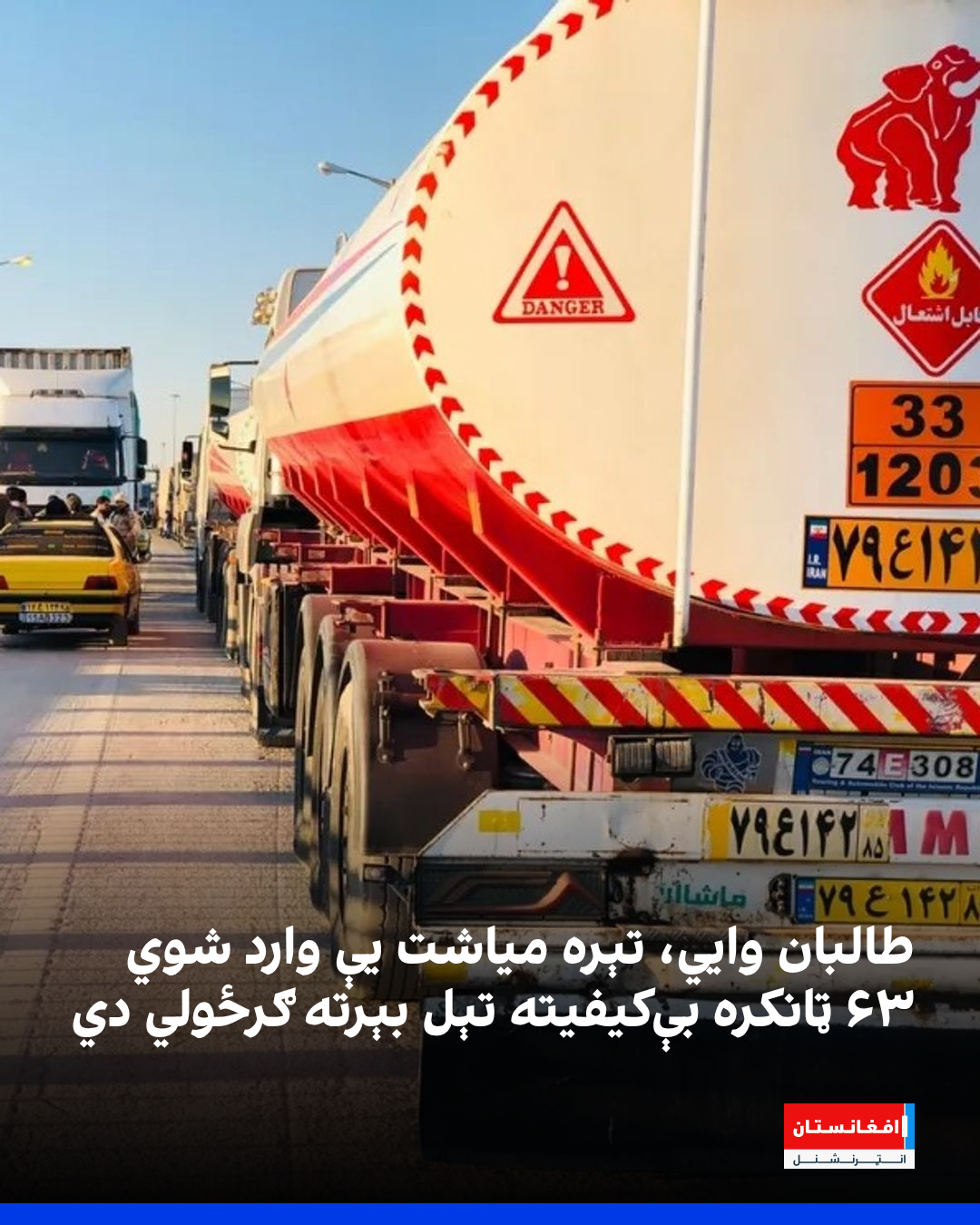 د طالبانو مالیې وزارت خبر ورکړی، چې په تېرې تلې میاشت کې یې وارد شوي ۶۳ ټانکره بېکیفیته تېل بېرته ګرځولي دي. د دغه وزارت له لوري په خپرې شوې خبرپاڼه کې راغلي، چې دغه تېل د یاد وزارت د تېلو د کیفیت او څار ریاست له لوري له فراه، نیمروز، حیرتان او شېرخان بندرونو بېرته ګرځول شوي.