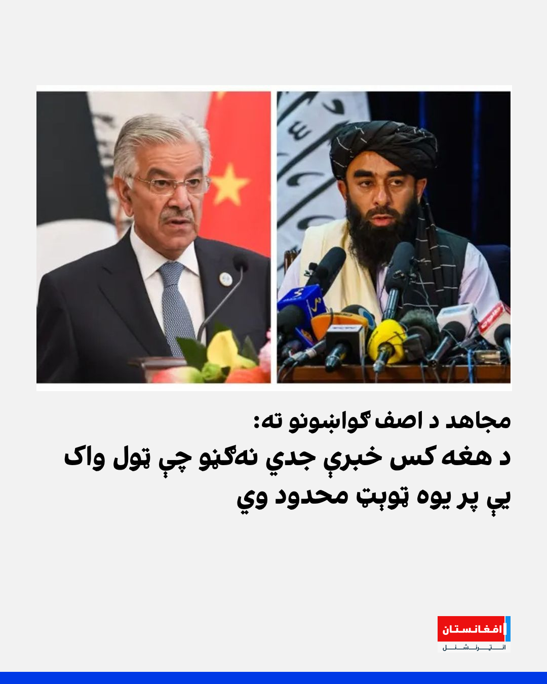 ذبیحالله مجاهد ویلي، طالبان نهغواړي چې د خواجه اصف پر خبرو د پاکستان له ټول ملت سره مخامخ شي او په وینا یې، د پاکستان ولس او ټول ګوندونه له افغانستان سره جګړه نه غواړي او افغانستان هم له پاکستان سره د جګړې په لټه کې نه دی.