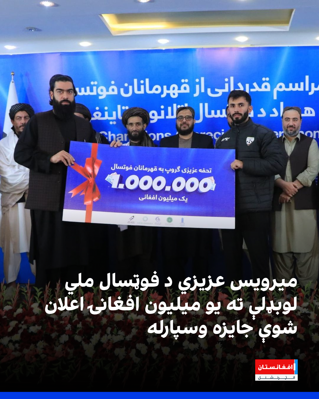 د طالبانو د المپیک، بدني روزنې او سپورټ لوی رییس وایي، د عزیزي سوداګریز ګروپ مشر میرویس عزیزي د افغانستان ۱۷ کلنه فوټسال ملي لوبډله د یوې غونډې پر مهال وستایله او د یو میلیون افغانیو جایزه یې هم ورکړه.