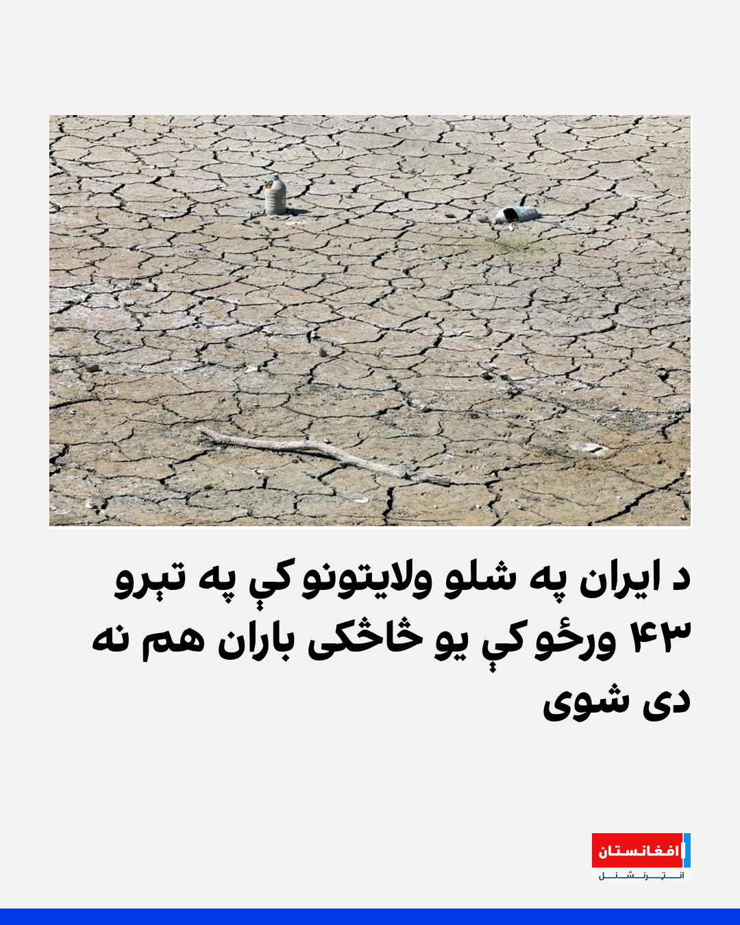د اوبو د سرچینو د مدیریت شرکت یو تازه راپور ښيي، چې د مني له پیل راهیسې تر اوسه پورې د ایران له ۳۱ ولایتونو څخه په ۲۰ ولایتونو کې یې «یو څاڅکی باران» هم نه دی شوی. دا وضعیت په تېرو شپېتو کلونو کې بېساری ګڼل کېږي.