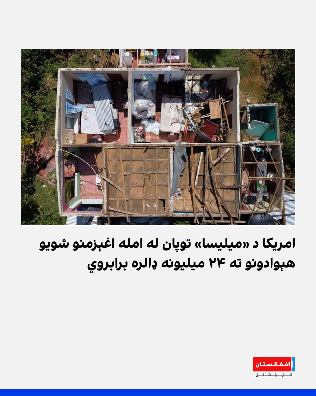 د امریکا د بهرنیو چارو وزارت ویلي، متحده ایالات به د تېرې اوونۍ د «میلیسا» توپان له امله اغېزمنو شویو هېوادونو جامایکا، هایټي، باهاماس او کیوبا ته ۲۴ میلیونه ډالره بېړنۍ مرسته ورکړي.