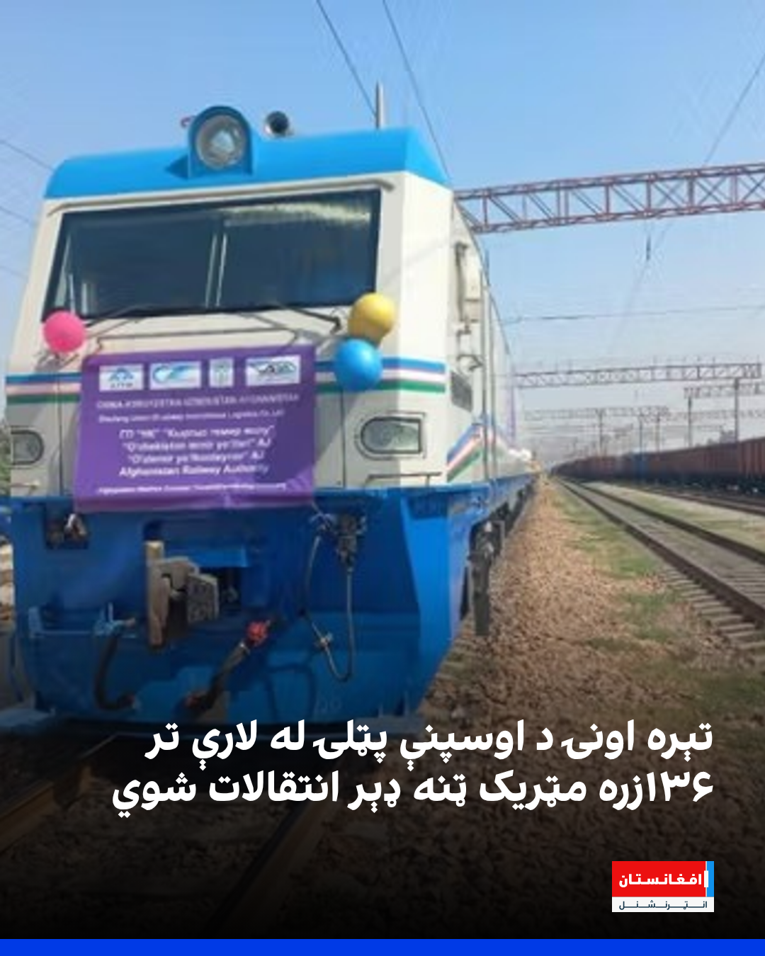 د طالبانو د ټولګټو چارو وزارت خبر ورکړی، چې په تېره یوه اونۍ کې د اوسپنې پټلۍ له لارې (۱۳۶۲۲۷) مټریک ټنه انتقالات شوي دي. په دغه انتقالاتو کې صادرات هم شامل دي.