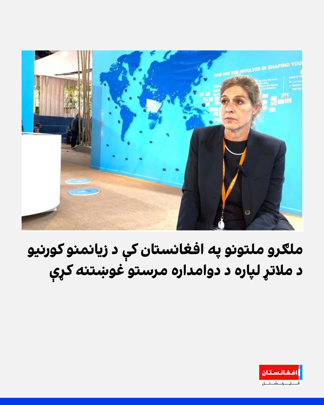 هغې دا هم روښانه کړه، چې اقلیمي بدلون د خلکو ژوند ته جدي ګواښونه پېښوي او نړۍواله ټولنه باید په ګډه د زیانمنو خلکو د ملاتړ لپاره سملاسي ګامونه پورته کړي.