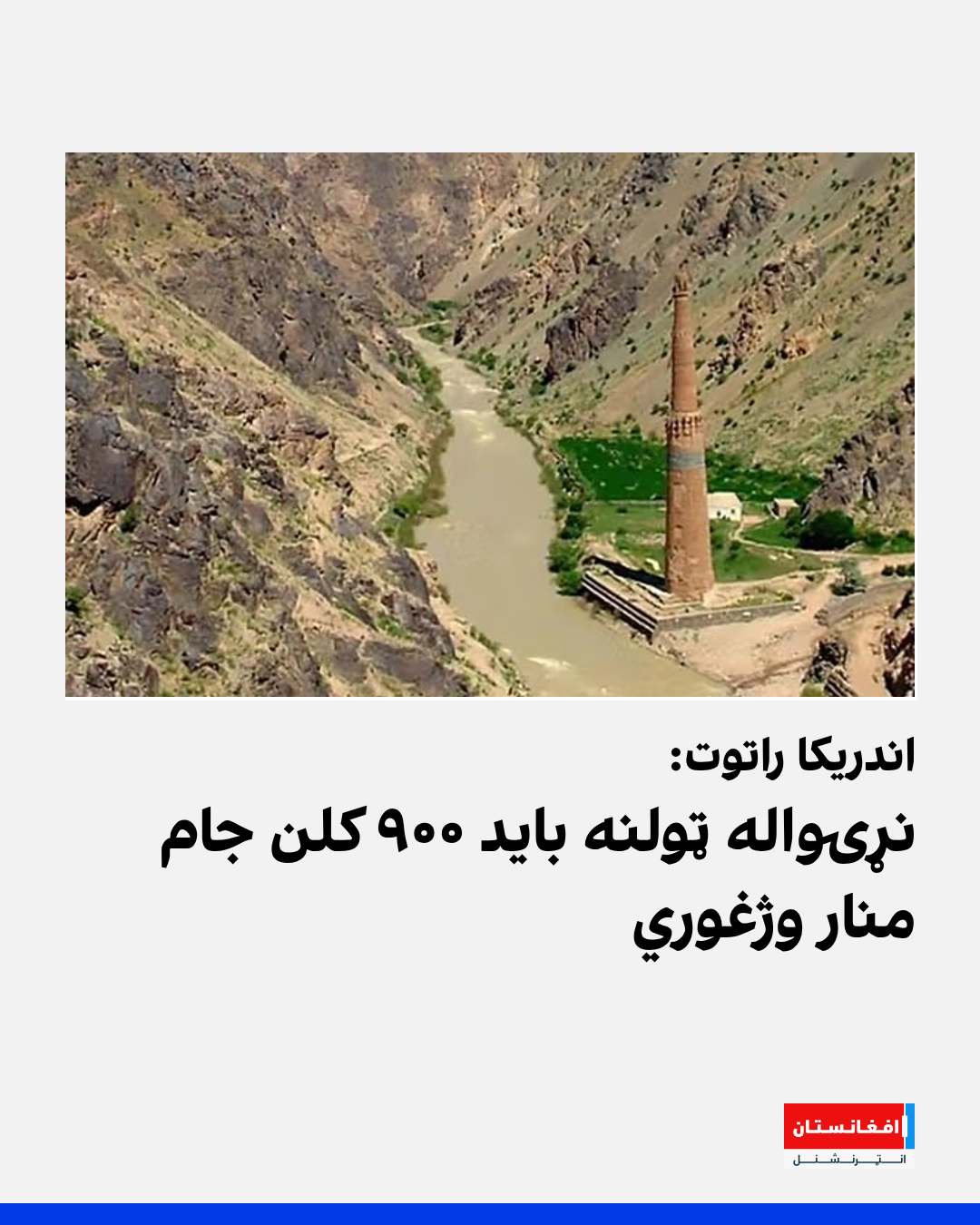 انډریکا راټوټ ټینګار کړی، چې نړۍواله ټولنه باید له ځنډ پرته د دغه ۹۰۰ کلن تاریخي منار د زیان رسېدو او لهمنځه تلو ګواښ مخه ونیسي؛ څو دغه میراث راتلونکو نسلونو ته خوندي پاتې شي.