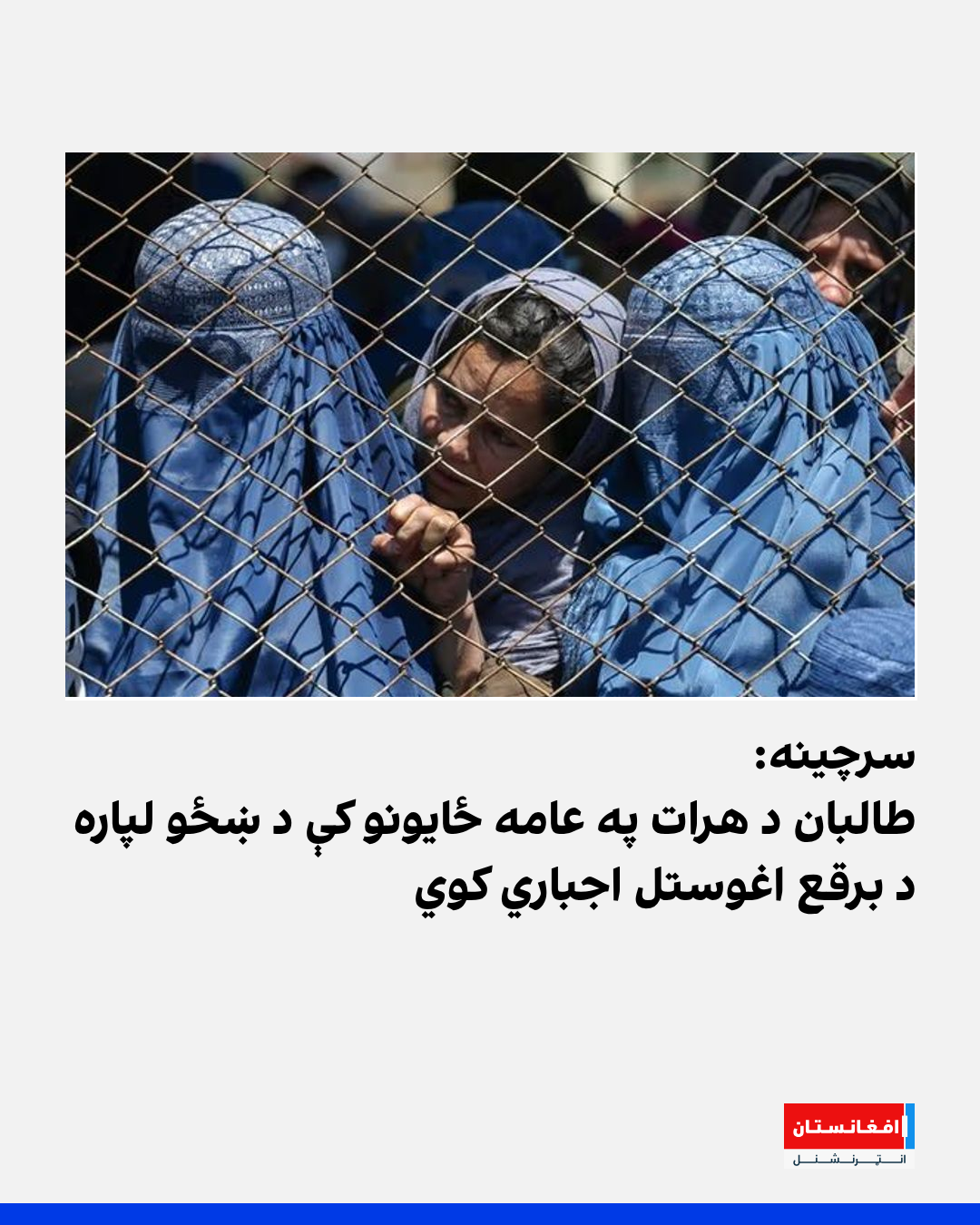 په هرات کې سرچینې وايي، د طالبانو والي د خدماتو ترلاسه کولو او سوداګریزو مرکزونو ته د ننوتلو لپاره د ښځو لپاره د برقع اغوستل لازمي کړي دي. د نور احمد اسلام جار د نوې لارښوونو له مخې، ښځې به نور د برقع اغوستلو پرته دولتي دفترونو، هټیو، روغتونونو او ادارو ته د ننوتلو اجازه ونه لري.