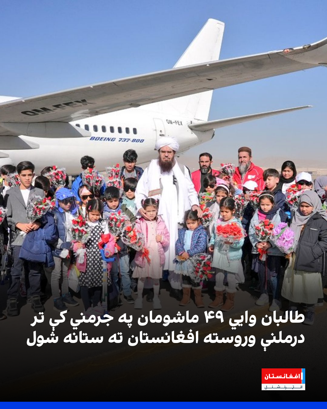 د طالبانو تر واک لاندې د افغاني سرې میاشت ټولنې ویلي، چې ۴۹ ماشومان په جرمني کې تر درملنې وروسته هېواد ته راستانه شول او ۷۵ تنه نور ماشومان یې د درملنې په موخه یاد هېواد ته ولېږل.
