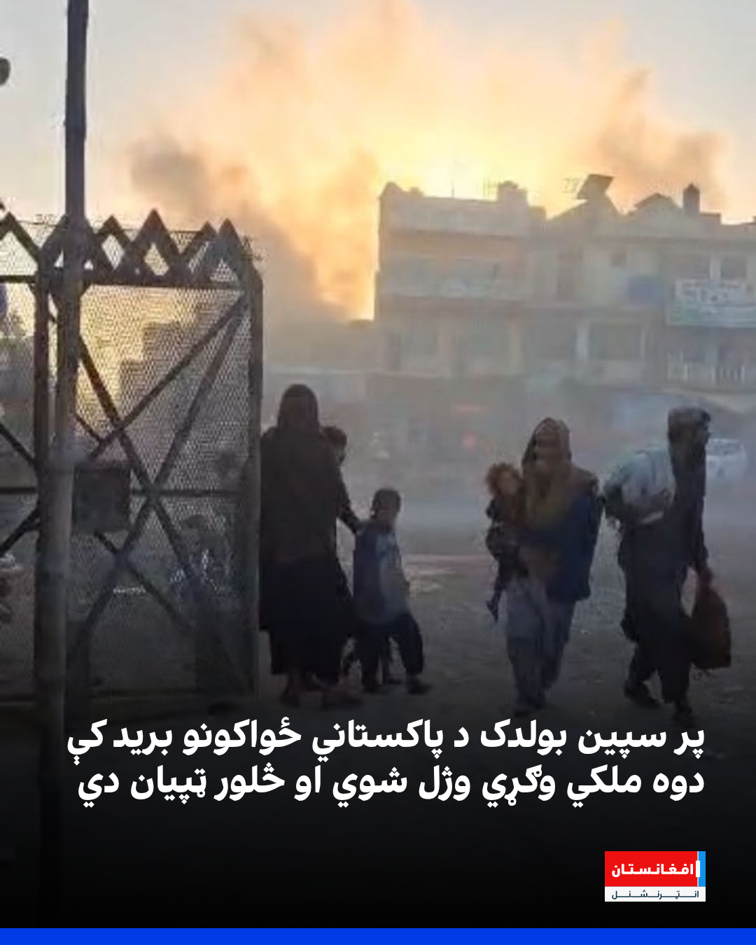 سرچینو افغانستان انټرنشنل ته ویلي، چې د کندهار پر سپین بولدک ولسوالۍ د پاکستاني ځواکونو په برید کې د حاجي وردګ او سیټ کلیو کې د پاکستان د هاوان مرمۍ لګېدو له امله دوه کسان وژل شوي او څلور نور ټپیان دي.