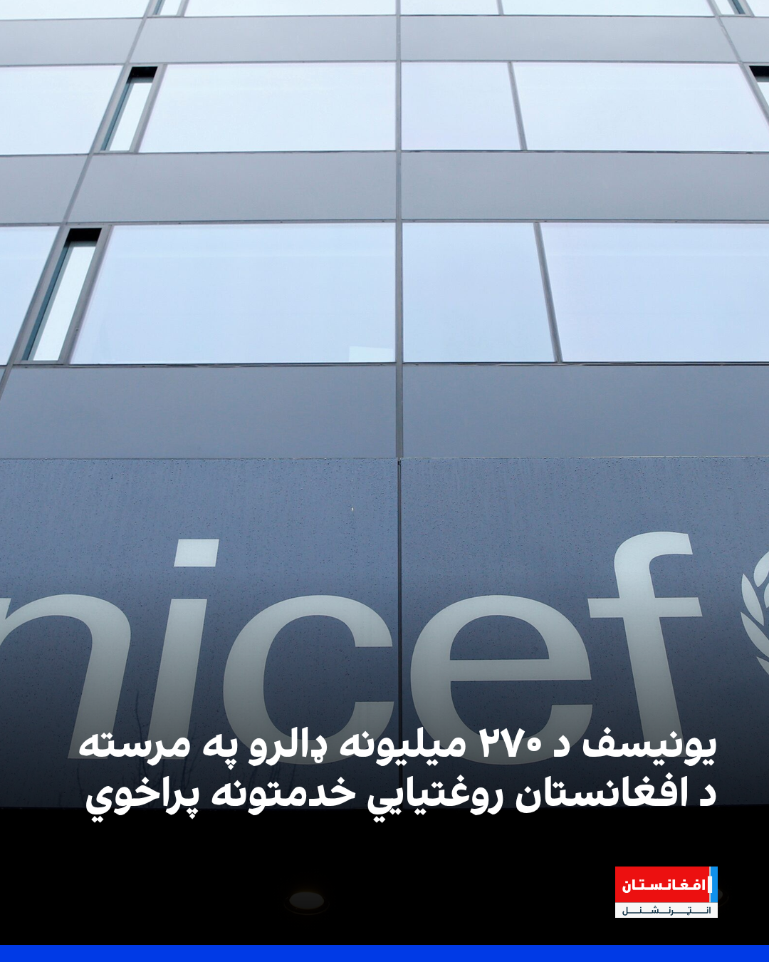 له ماشومانو څخه د ملګرو ملتونو د ملاتړ صندوق(یونیسف) اعلان کړی چې د اسیا پرمختیایي بانک د ۲۷۰میلیونه ډالرو په مالي ملاتړ سره به د افغانستان په ۱۷ولایتونو کې د اړینو روغتیایي خدمتونو د پراختیا او دوام لپاره کار وکړي.