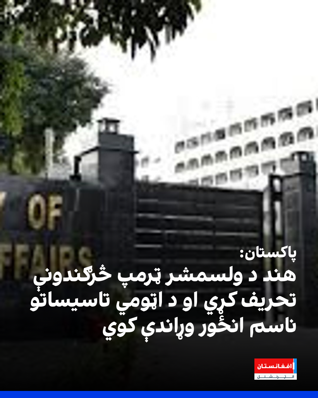 د هند د بهرنیو چارو وزارت ویاند رندیر جیسوال، نن (جمعه د لړم ۱۶مه) د خپل اونیز خبري کنفرانس پر مهال د امریکا د ولسمشر ډونالډ ټرمپ د هغو څرګندونو په تړاو چې ګواکې پاکستان لا هم اټومي ازمېښتونه کوي وویل: «د پاکستان پټ او ناقانونه اټومي فعالیتونه د هغه د اوږده تاریخ یوه برخه ده، چې له لسیزو راهیسې د قاچاق، د صادراتو د کنټرول د اصولو د ماتولو، پټو همکاریو، د اېکيو خان (A.Q. Khan) شبکې د دوام پر بنسټ ولاړ دی.»