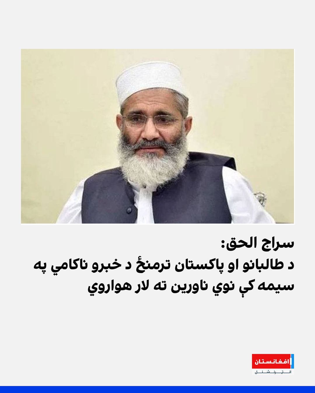 د پاکستان د جماعت اسلامي ګوند پخواني مشر سراج الحق ویلي، چې د طالبانو او پاکستان ترمنځ د مذاکراتو ناکامي د سیمې د سولې او ثبات لپاره خطرناک پرمختګ دی او کولی شي نوی ناورین وزېږوي.